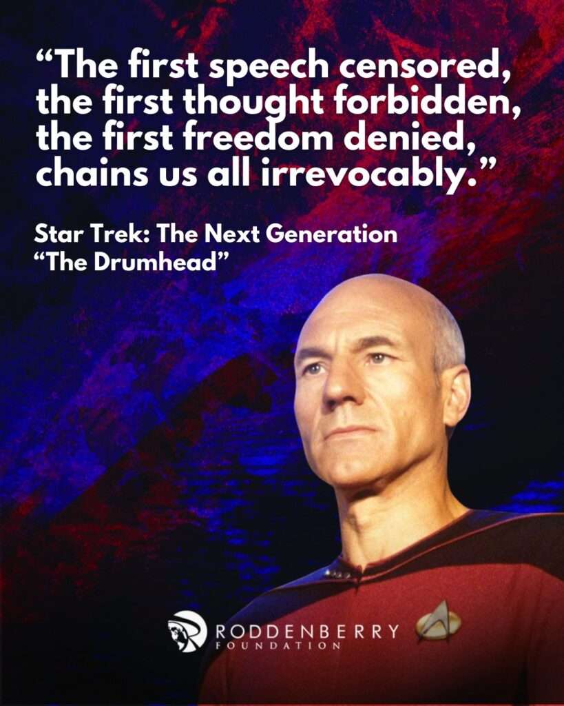 #StarTrekMarathon #StarTrek TNG Ep 95 - The Drumhead - 29 Apr 1991 2/2 path there is an ugly one, although VERY well acted. Events of several past episodes are brought up and discussed as evidence, including Picard's capture by the Borg. Dialogue at end of ep mirrors today's real life politics.
