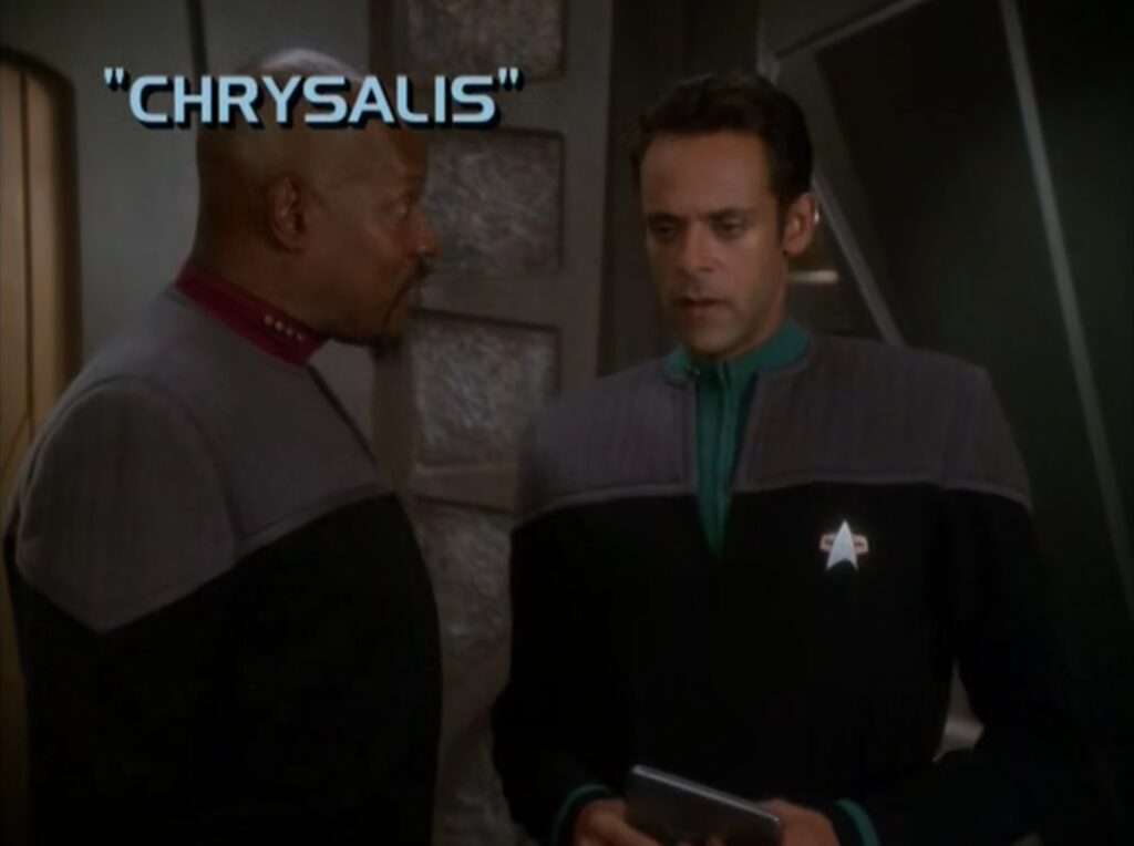 [ Wikipedia | Memory Alpha | IMDB | Amazon US DVD ]#StarTrekMarathon Deep Space Nine Ep 155 - Chrysalis - 26 Oct 1998 1/2 The other genetically enhanced humans from last series return. Bashir is portrayed as lonely at the start of this, so he falls for the one female of the group who doesn't talk. I don't actively dislike this, but the show always