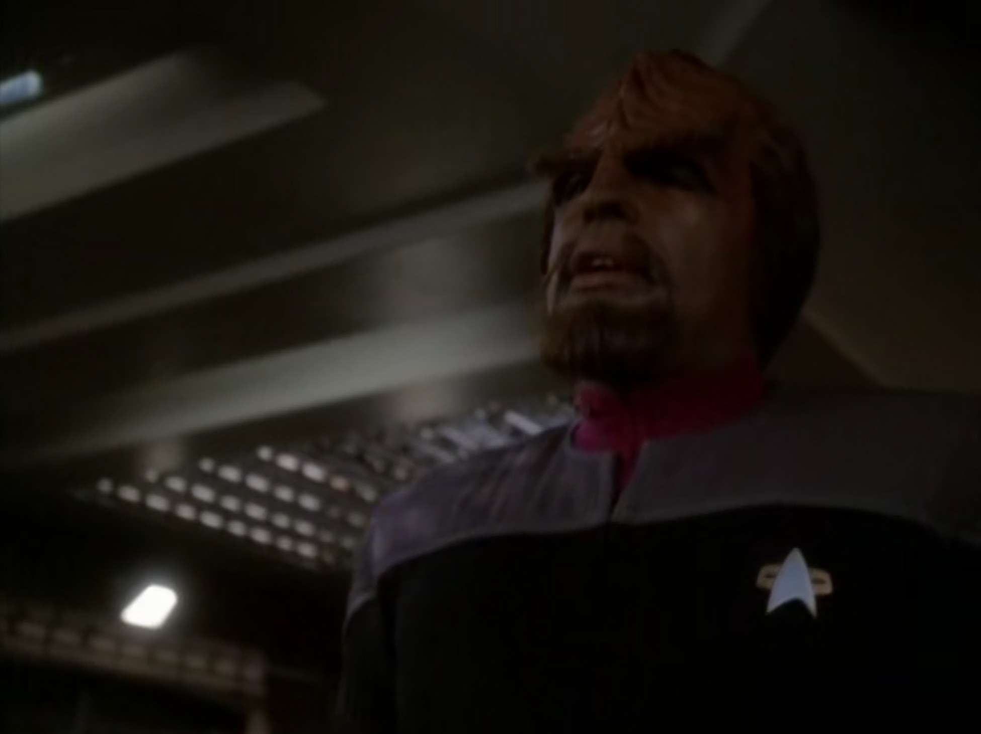 - One of the few times Worf wears his Starfleet uniform without his Klingon baldric.