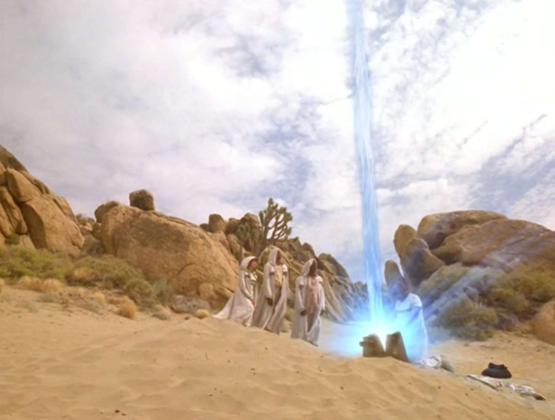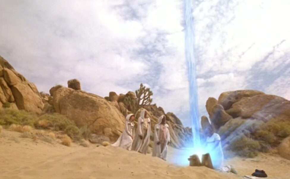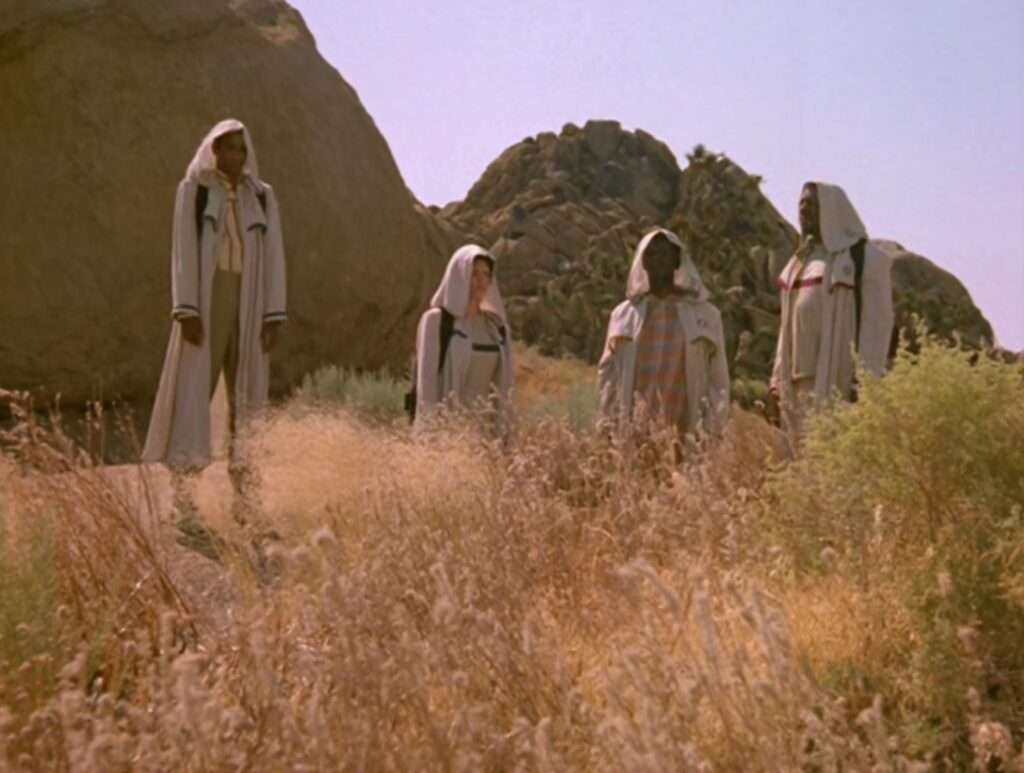 • The real life location used to film the Tyree desert sequences was used again in the Voyager episode “Gravity“.  The two episodes aired just four months apart.