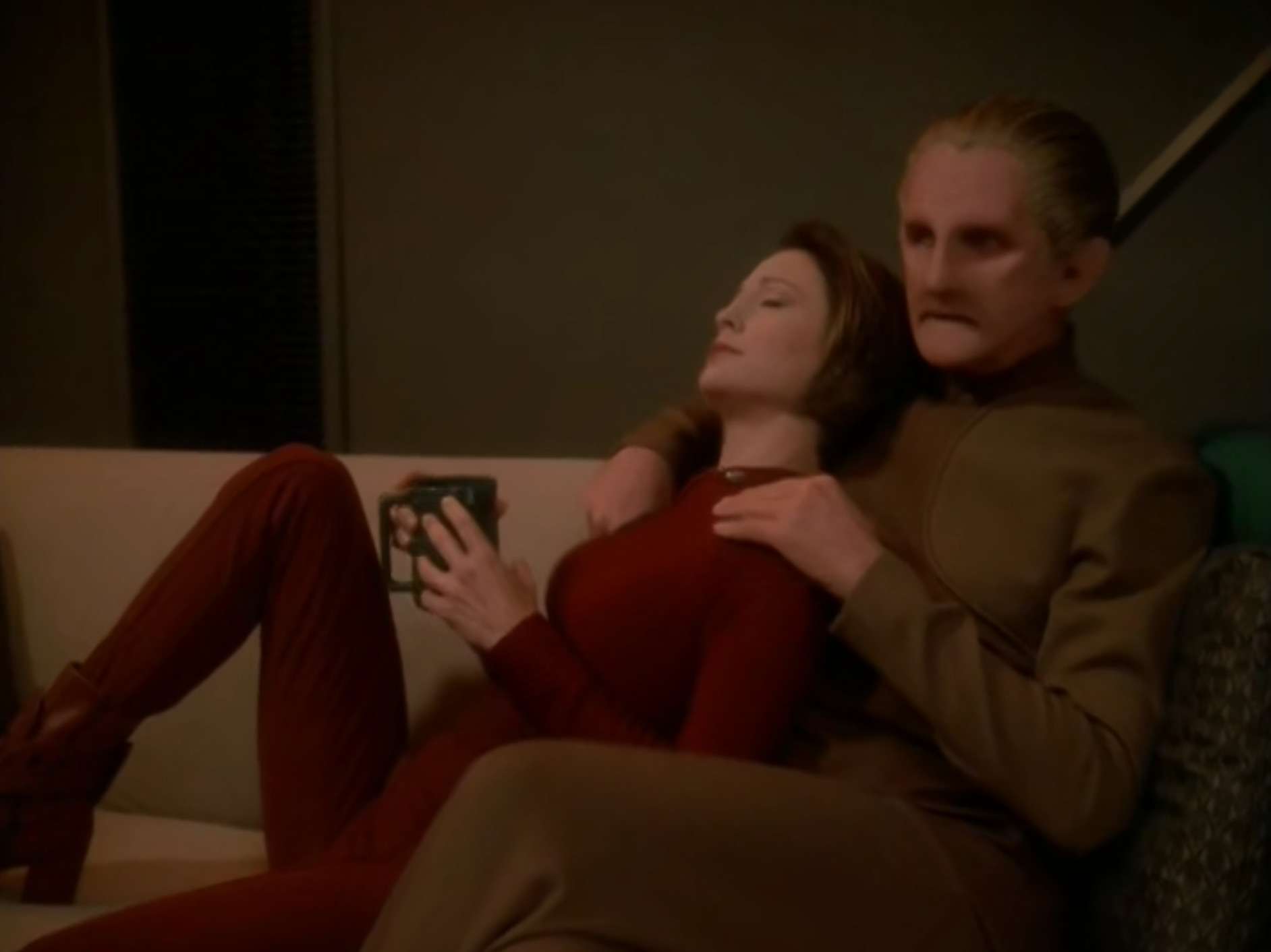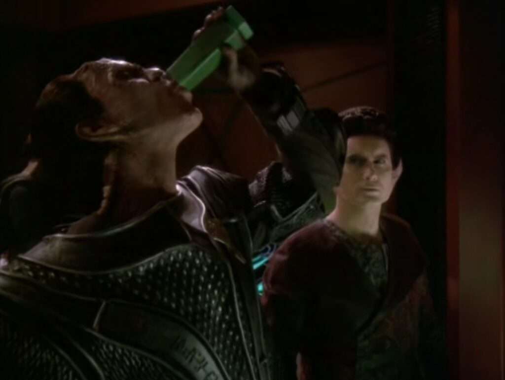 • The Romulan Cretak was played by Megan Cole.  She was also Noor in the TNG episode “The Outcast” (and the DS9 episode immediately prior to this one).  The character appears again, but played by someone else (Adrienne Barbeau).