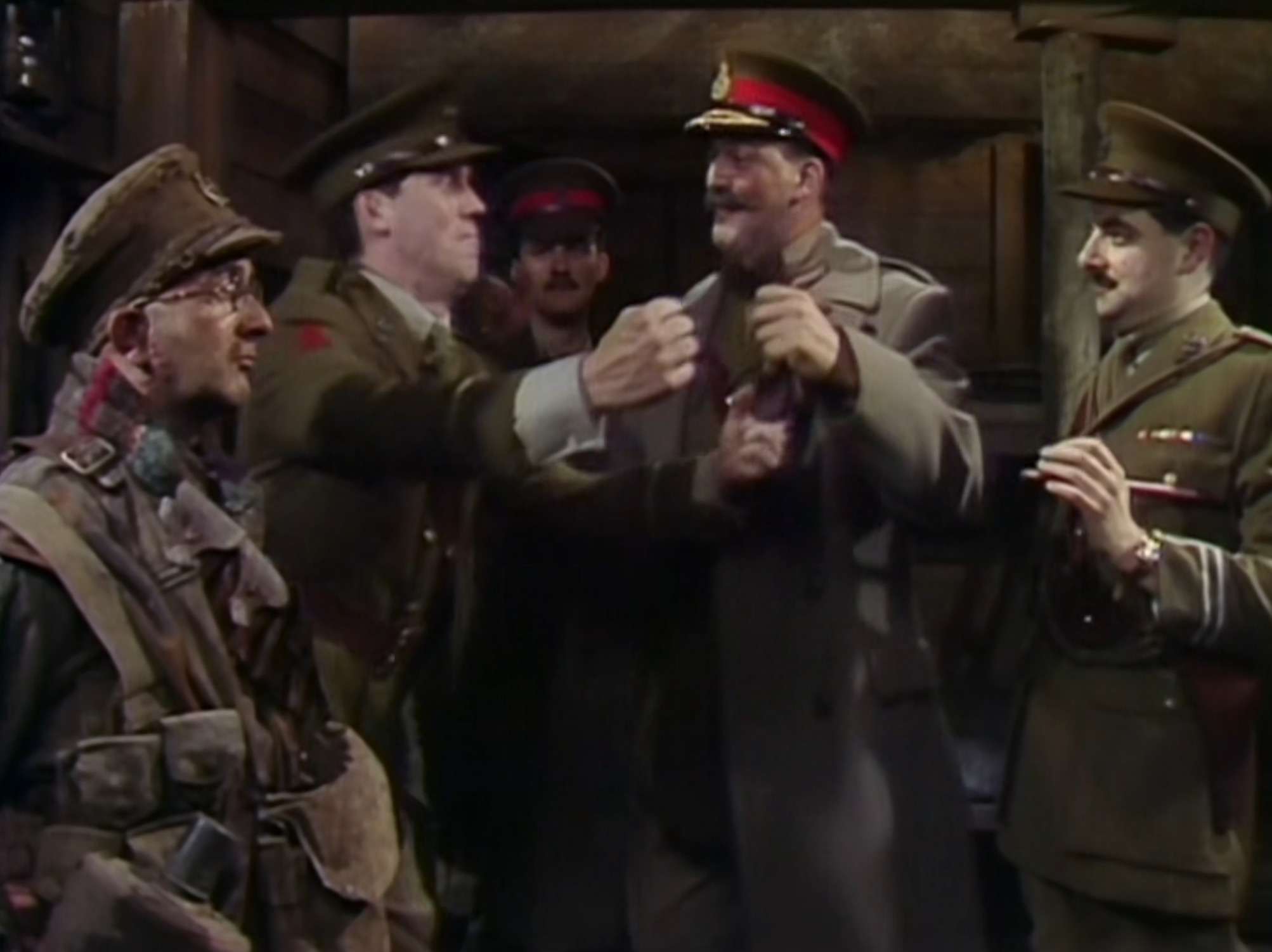 Black Adder Ep 19 - "Captain Cook" - 28 Sep 1989 1/3 S4 starts with one that has some really good quotable stuff. This series is set in WWI, and brings back Tim McInnerny & Stephen Fry as regulars. The premise is Fry's General character holds an art contest to get someone to paint a war thing, but