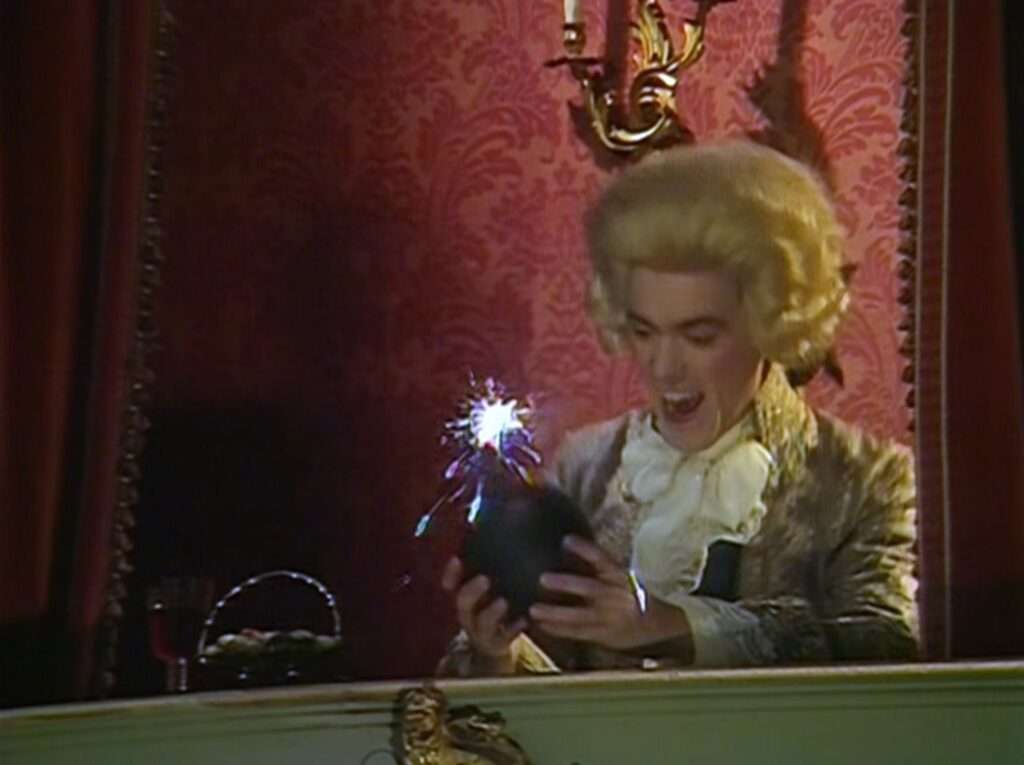 - The writer Ben Elton appears in the episode as an anarchist at the start of the episode that throws a bomb at the Prince.