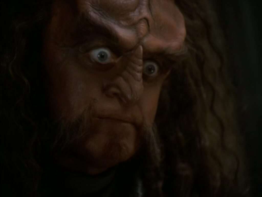 - The final episode for Robert O’Reilly and Gowron, as the character is killed in this episode.