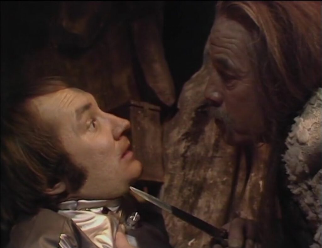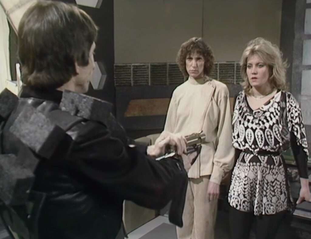 - The character of Joban was played by Kevin Stoney. Stoney would also appear in Series D’s “Animals” (as a different character). He’s also very well known for his three Doctor Who appearances. First was Mavic Chen in “The Daleks’ Master Plan“. The second was Tobias Vaughn in “The Invasion“. Finally he appeared as Tyrum in “Revenge of the Cybermen“. No ems – either full or partial are anywhere to be seen in this episode.