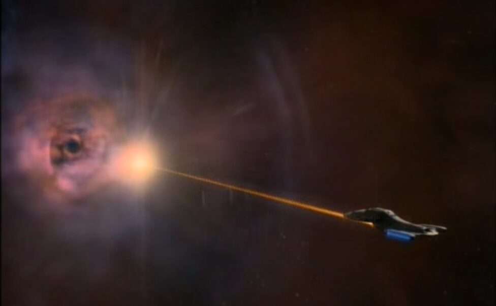 • The first of MANY stories in Voyager that involve a temporal anomaly and/or an alternate timeline.  I count 15 of them.