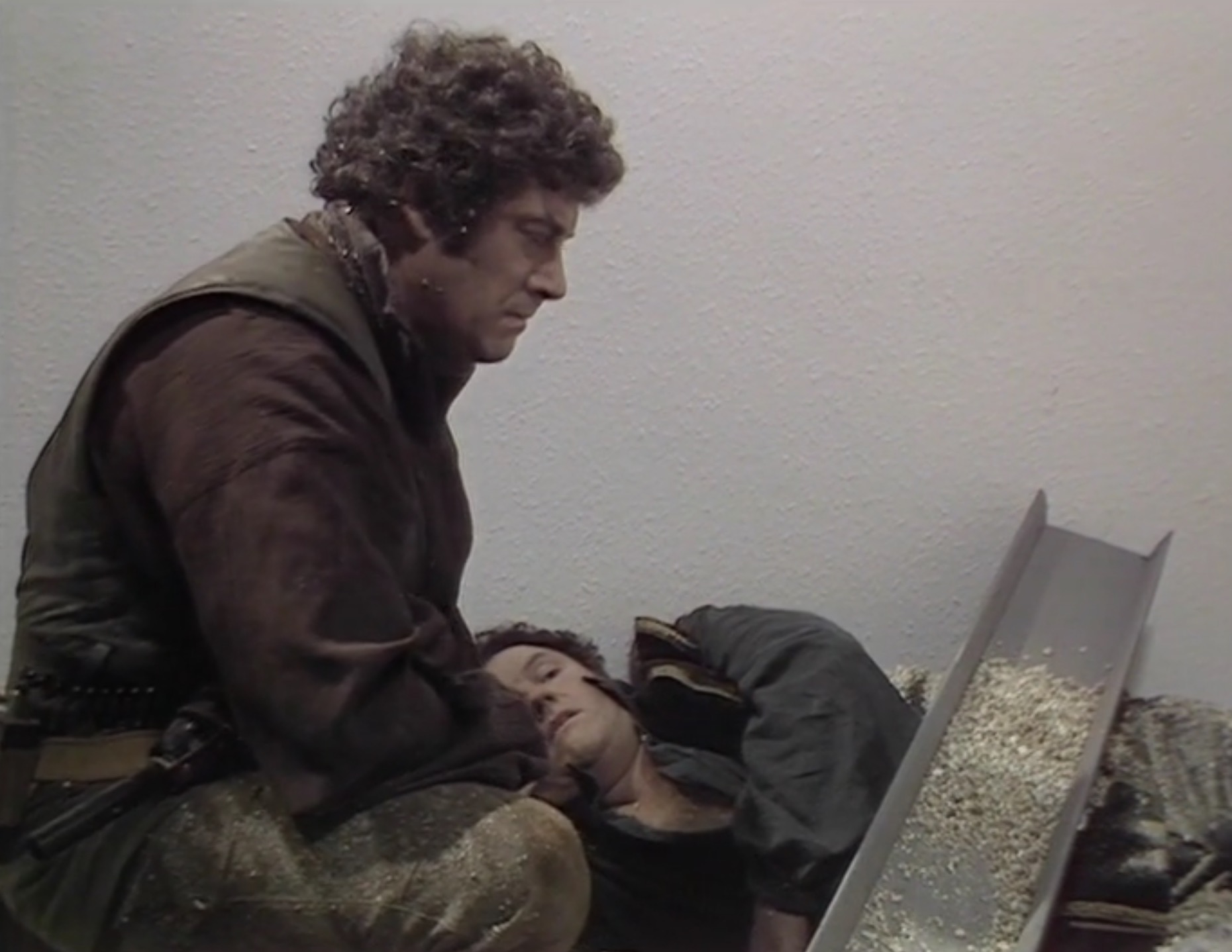 #B7Marathon #Blakes7 Blake's 7 Ep 18 - "Pressure Point" - 6 Feb 1979 2/3 Travis being a bastard and whacking a kid to her to be quiet. Blake's quest to destroy Star One starts here, and that's what Travis uses against him - his zealot desire to destroy the Federation. Plus of course, the show kills