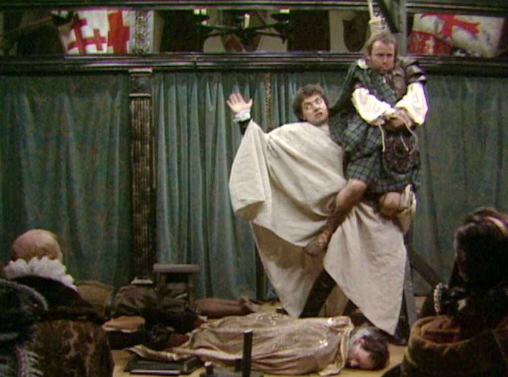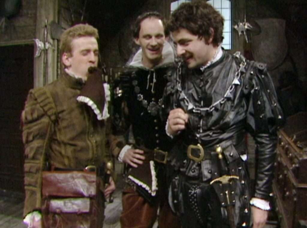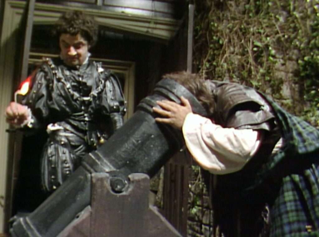 - Baldrick’s “cunning plan” jokes starts all the way back here at the original pilot. It’s a bit more extended than it is later on, as well.