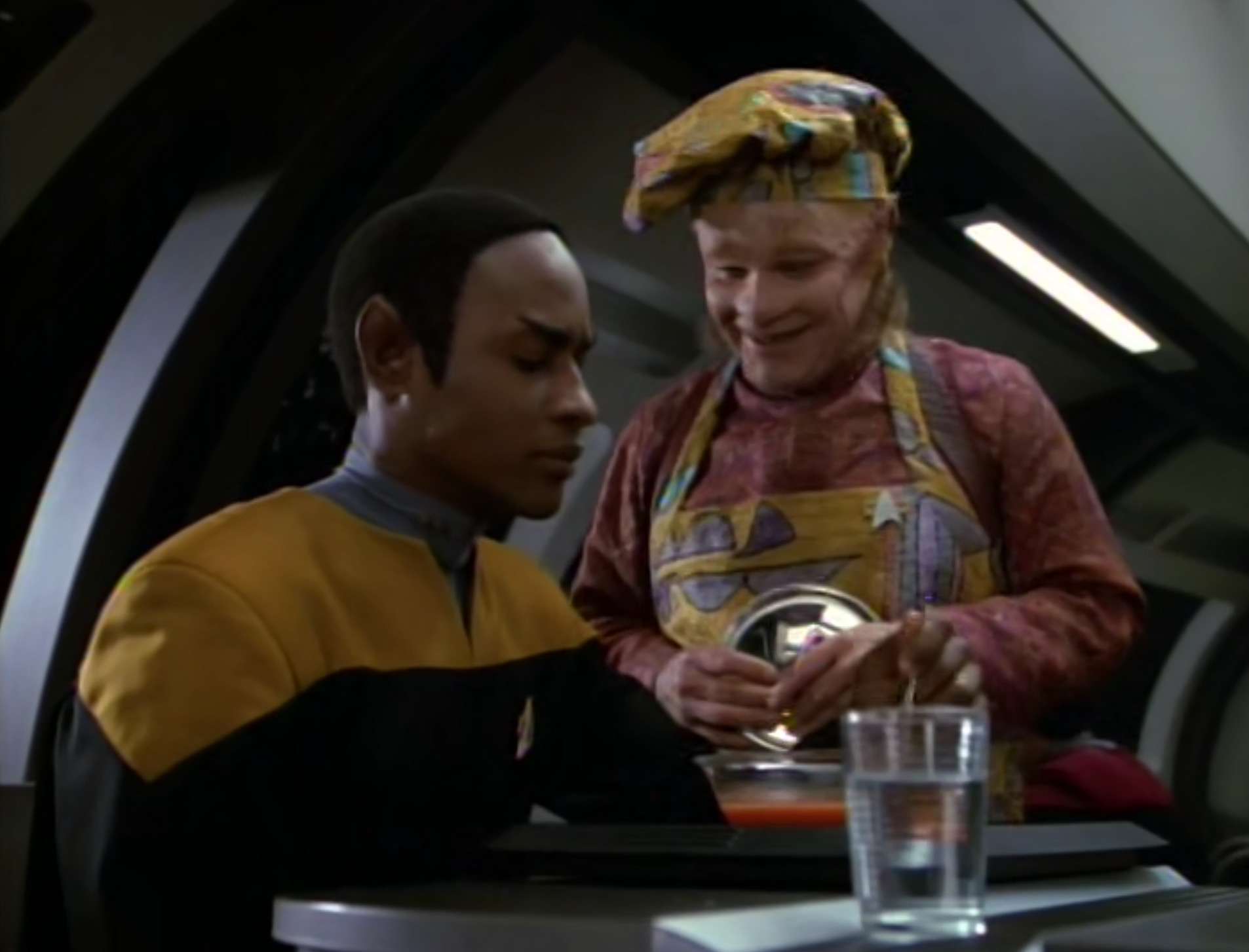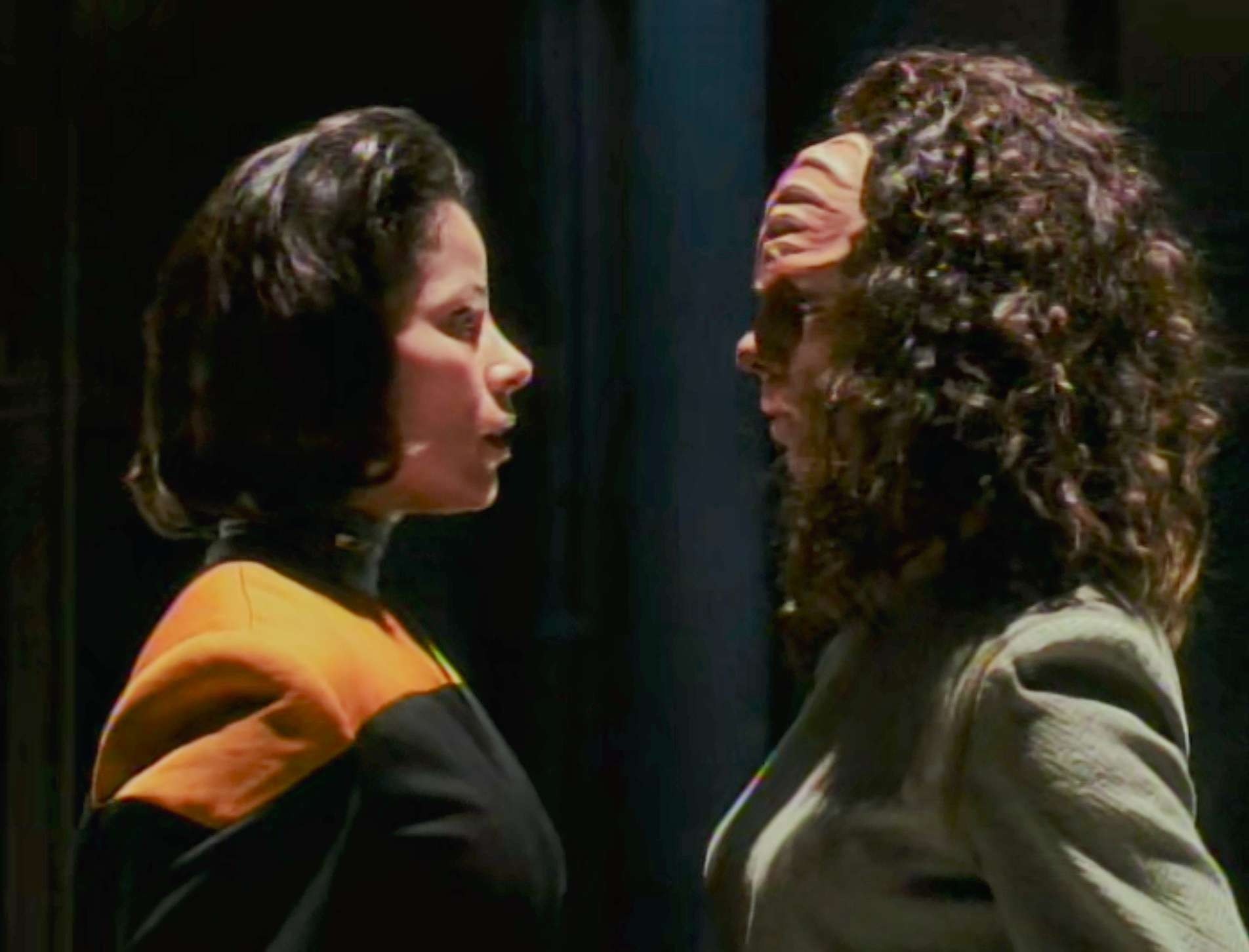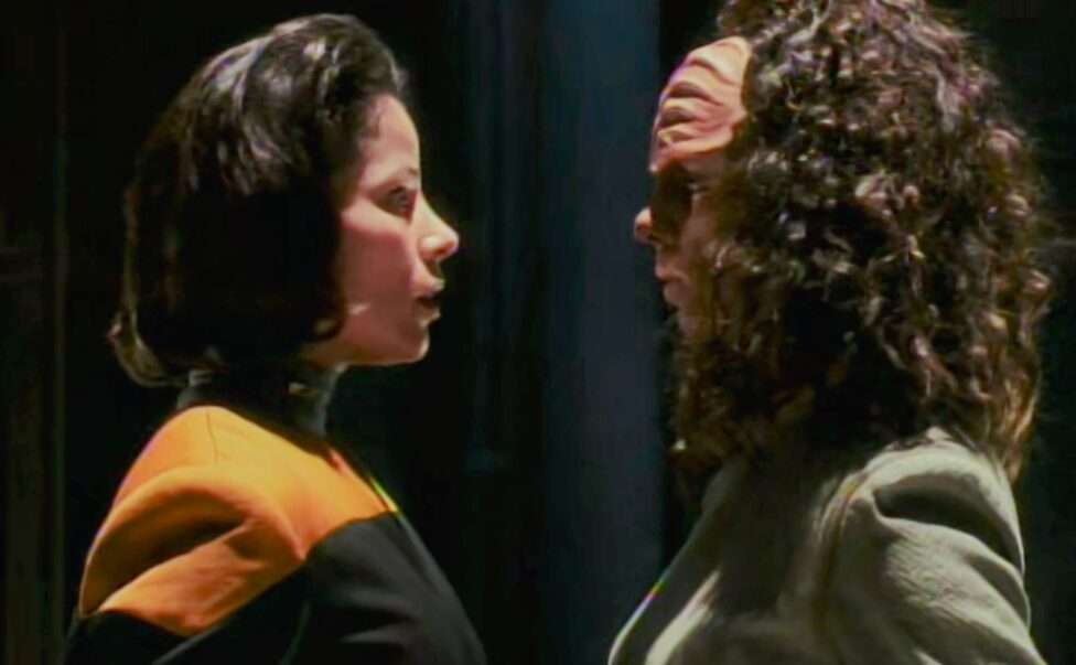 - For scenes when there was two B’Elannas at once, they didn’t use split screen. They cast another actress (Joy Kilpatrick) to play a body double. Kilpatrick was not credited in the episode for that.