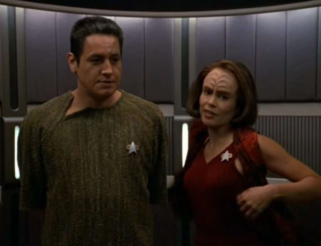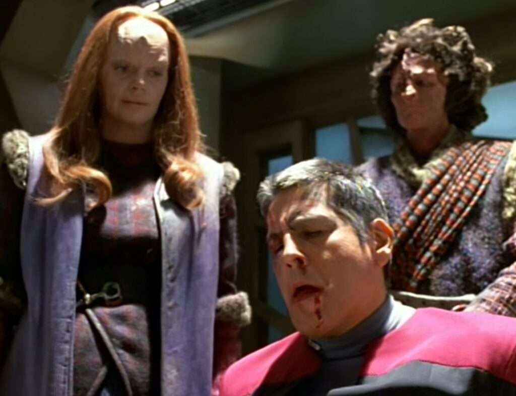 • We are introduced to other Kazon sects in this episode: Kazon-Relora, Kazon-Mostral, Kazon-Hobii, and Kazon-Oglamar.