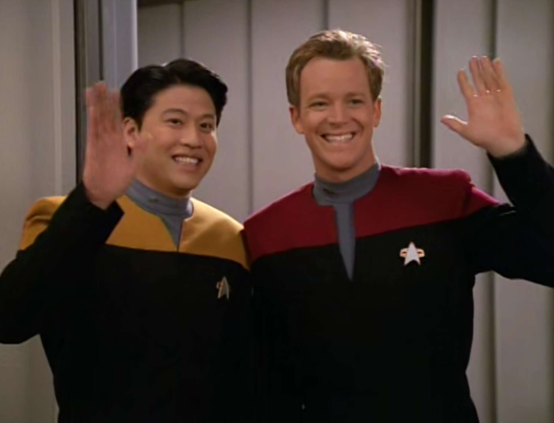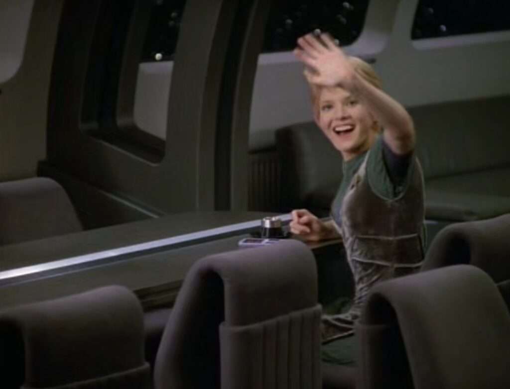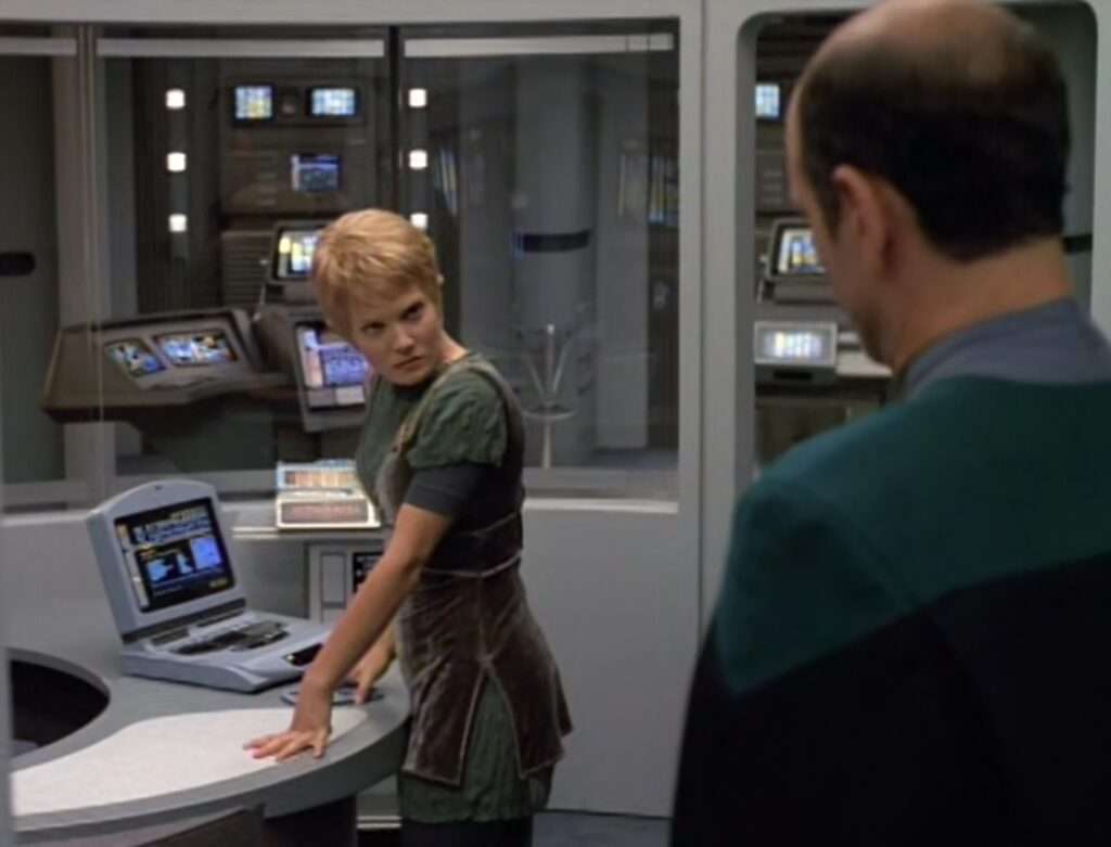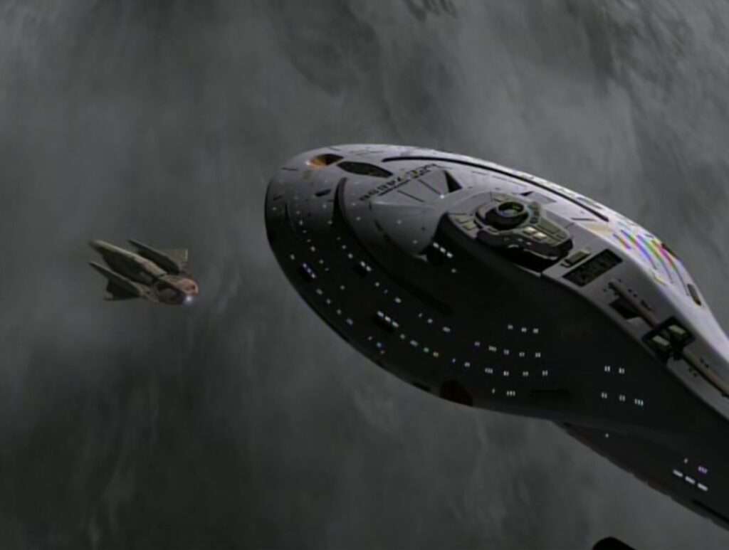 - The Jem Hadar soliders in a holodeck were a re-use of footage from the DS9 episode “The Search (Part I)“.