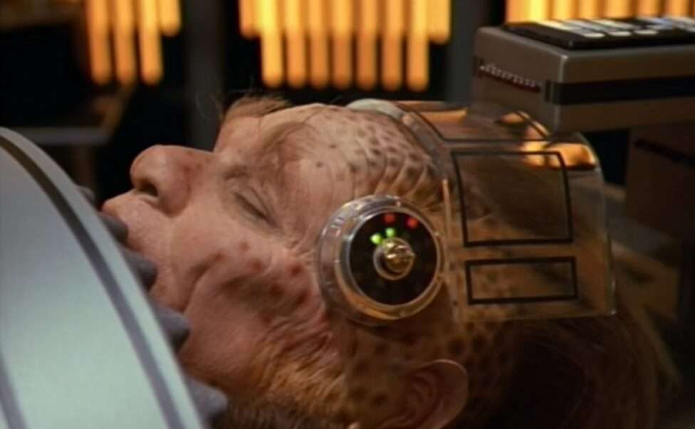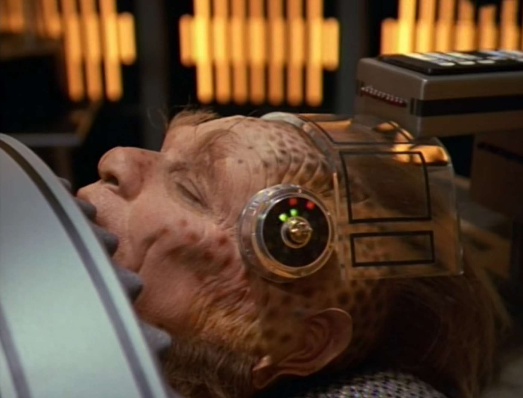 • The first episode with the Vidiian race.  They appear in six subsequent Voyager episodes, the final one being Season 6’s “Fury“.