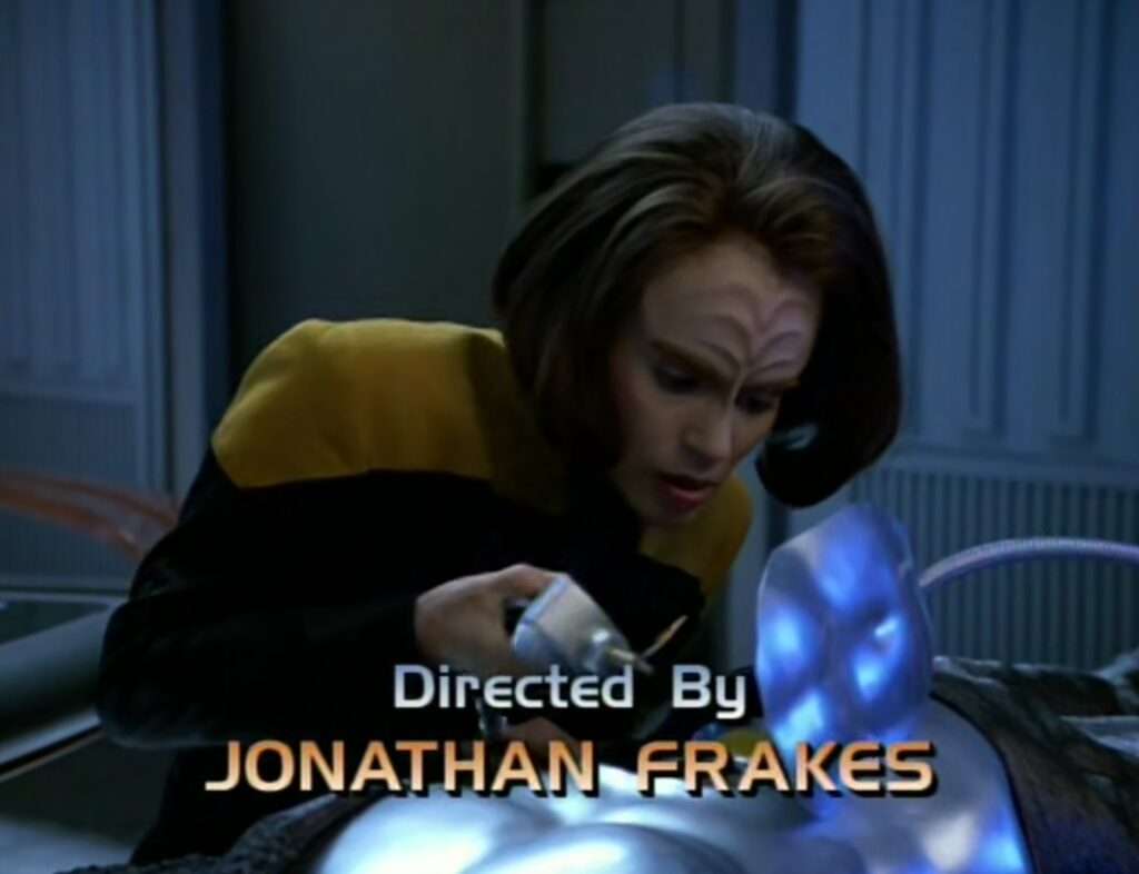 • The last episode of Star Trek directed by Jonathan Frakes.  After this he directed two TNG movies.  The next episode he directed was Discovery 01×10 – “Despite Yourself” in 2018.