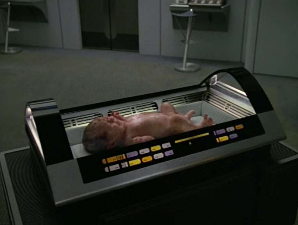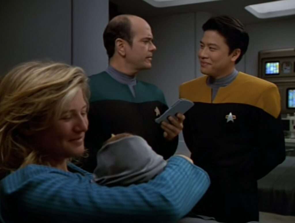 - Running fired torpedo count: 11 (7 this episode) / Confirmed crew deaths since pilot: 6 (crew of 148) – The crew complement increases by one with Samantha Wildman’s birth of Naomi.