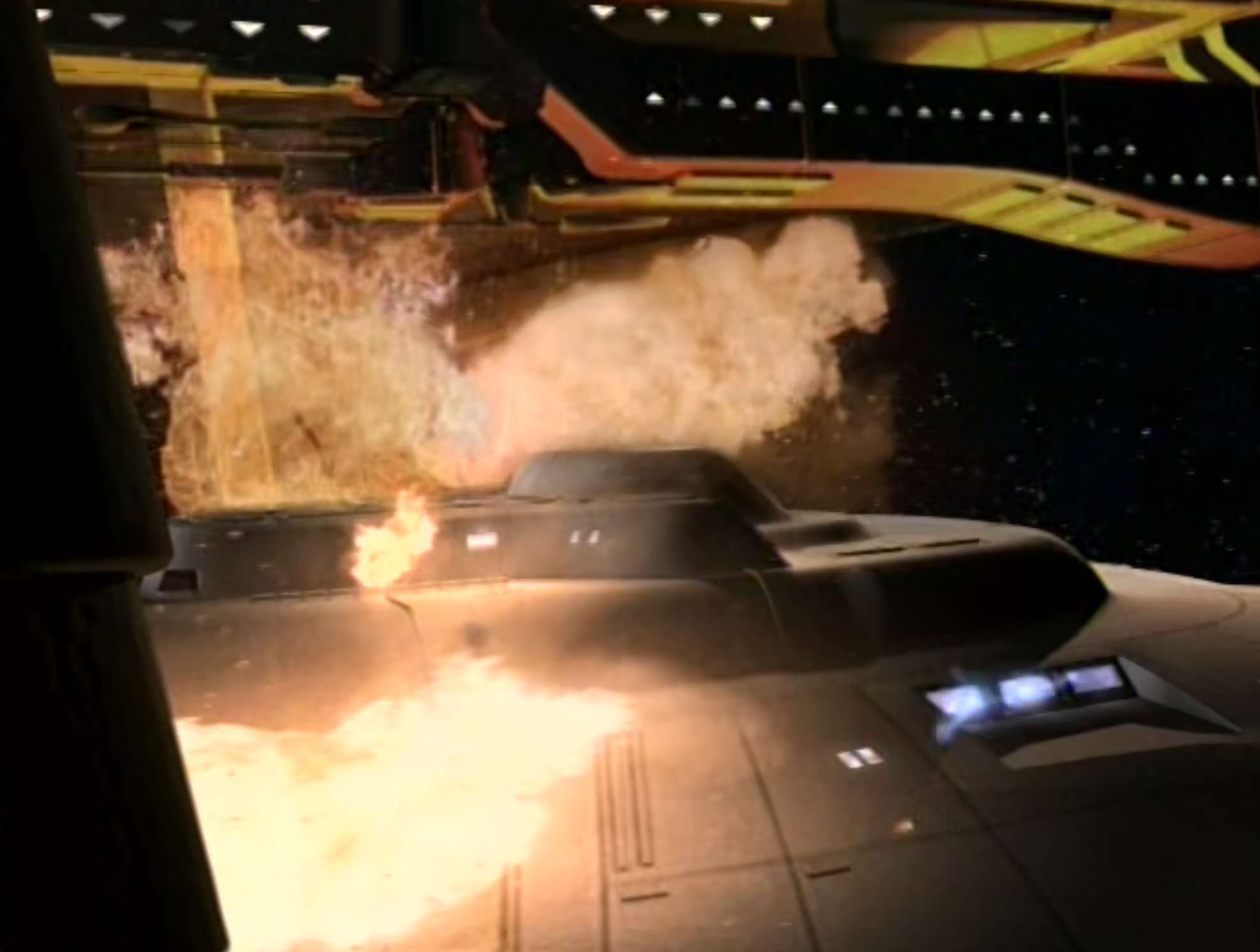 - The first time (of five times) we see Voyager destroyed in the series. It is also the second of three times where the self destruct was activated, only this time it wasn’t canceled.