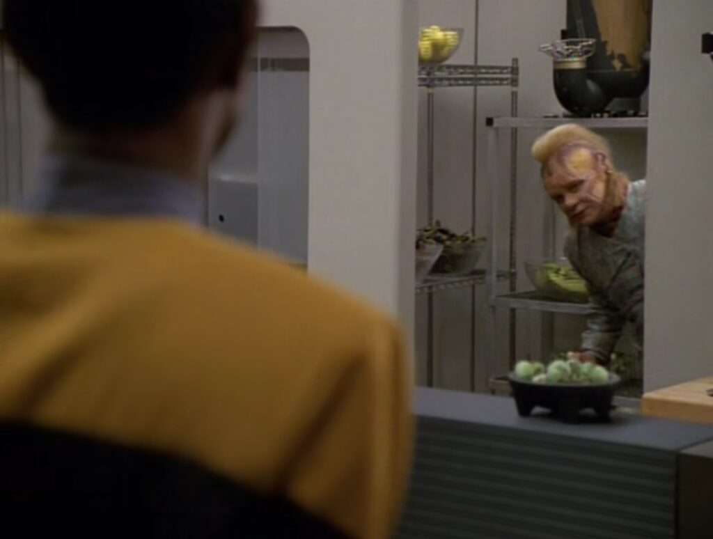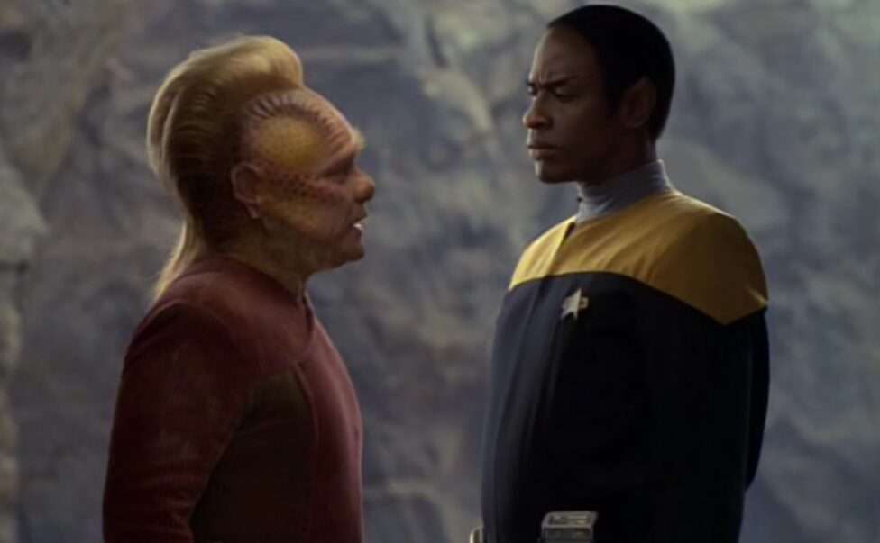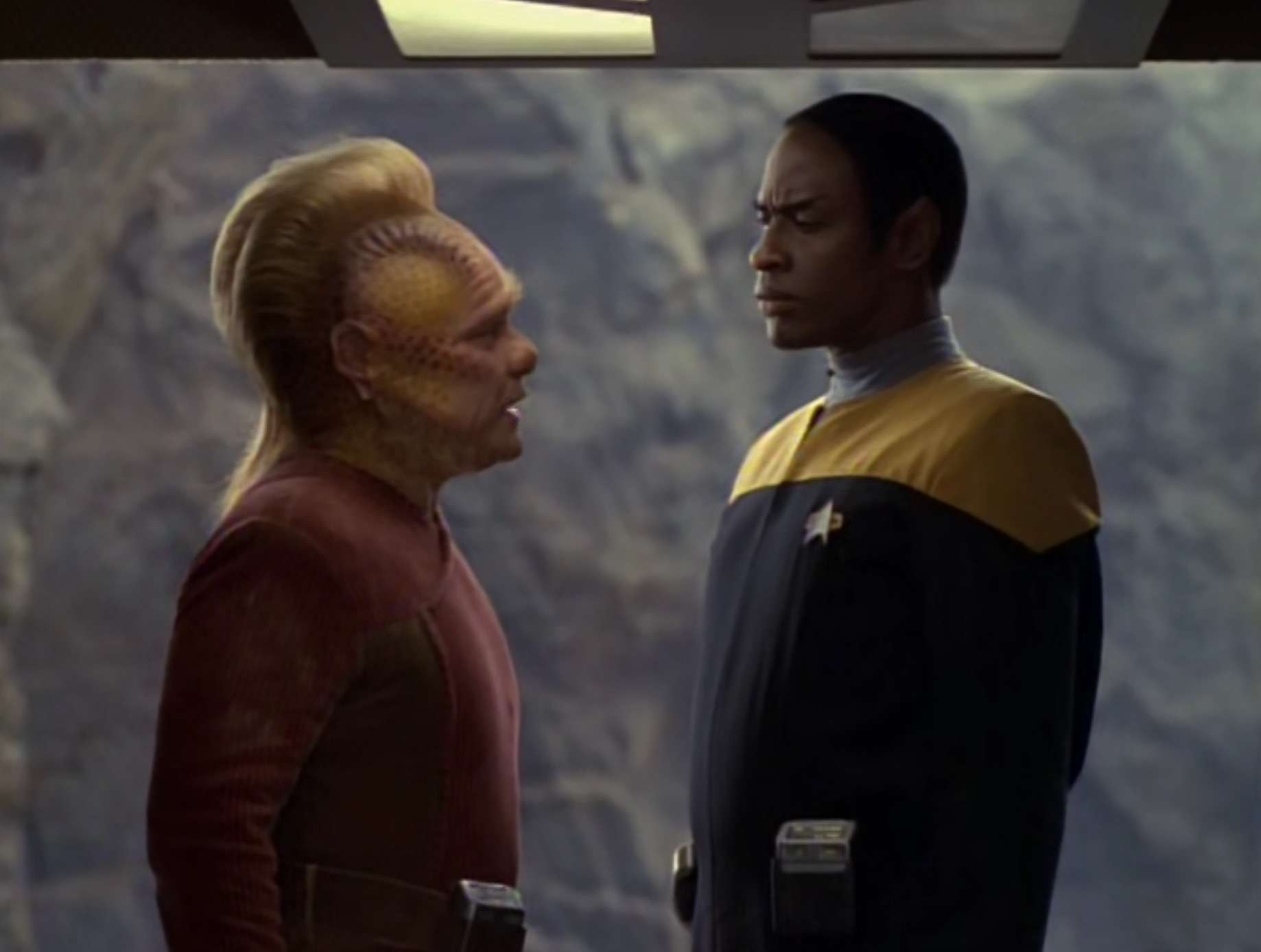 - Tom Towles plays Vatm in this episode. He was also Hon-Tihl in the DS9 ep “Dramatis Personae“.