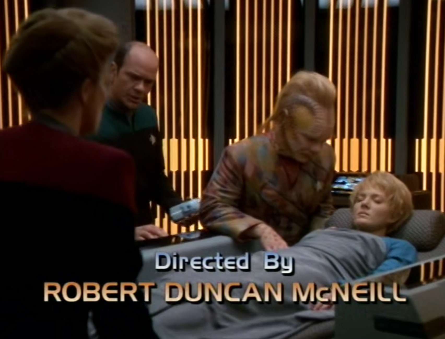 - The first episode directed by a cast member of Voyager – Robert Duncan McNeill. He also appears in the episode, but has no dialogue.