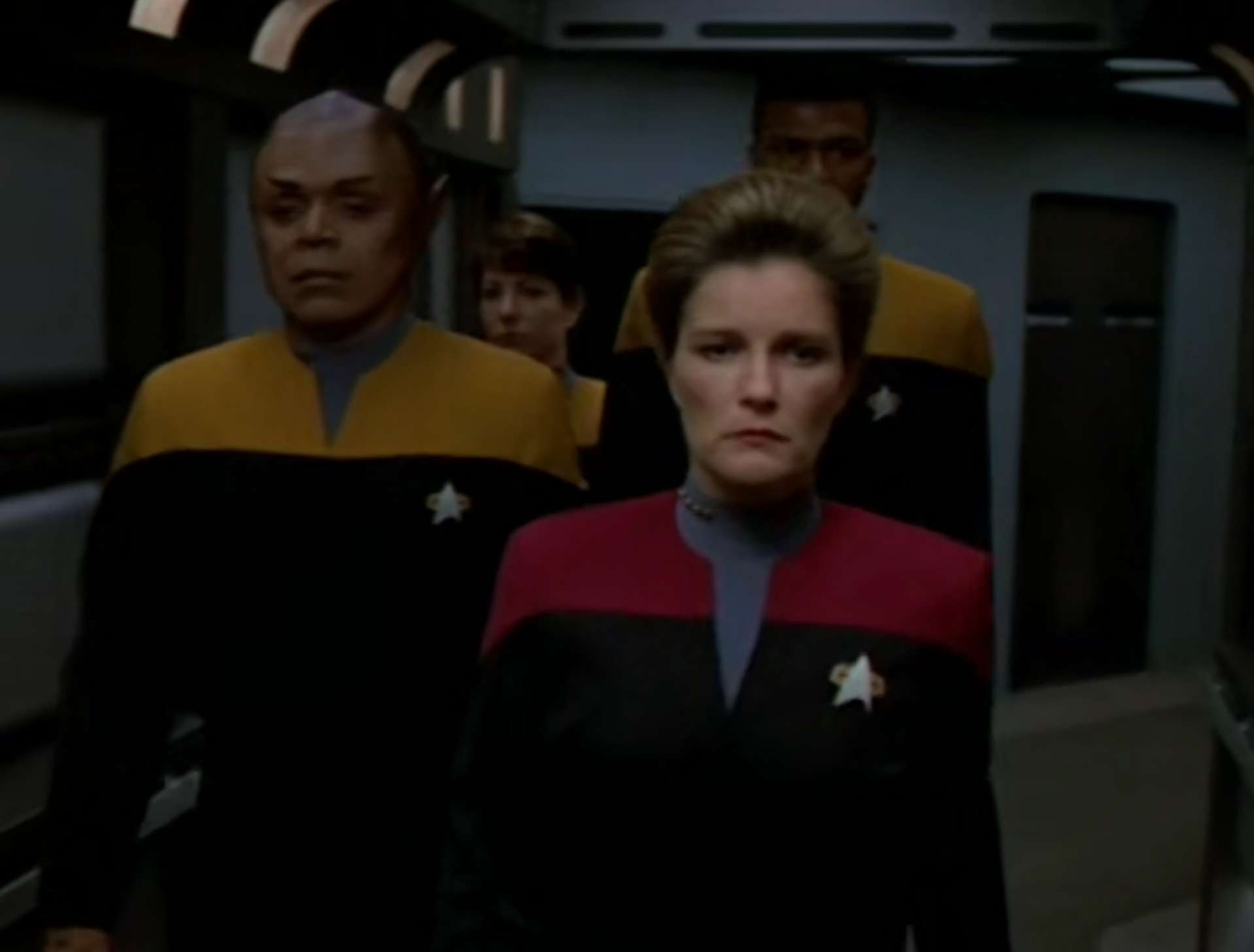 - The events of this episode are recalled in the Lower Decks episode “Twovix“. In that ep, Capt Freeman says she researched what Janeway did about this dilemma, as the same thing happened with two Lower Decks crew members on that episode.