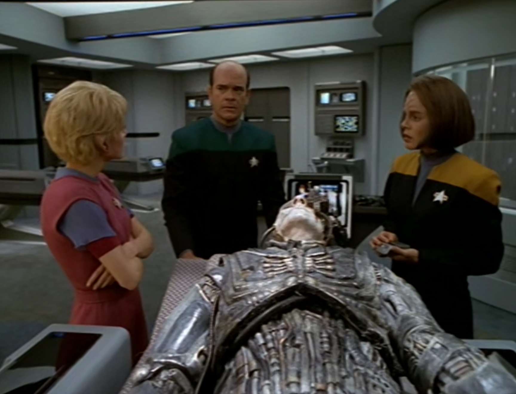 - While not explicitly seen or mentioned, the eventual “Species 8472” are implied to have fought the Borg here.