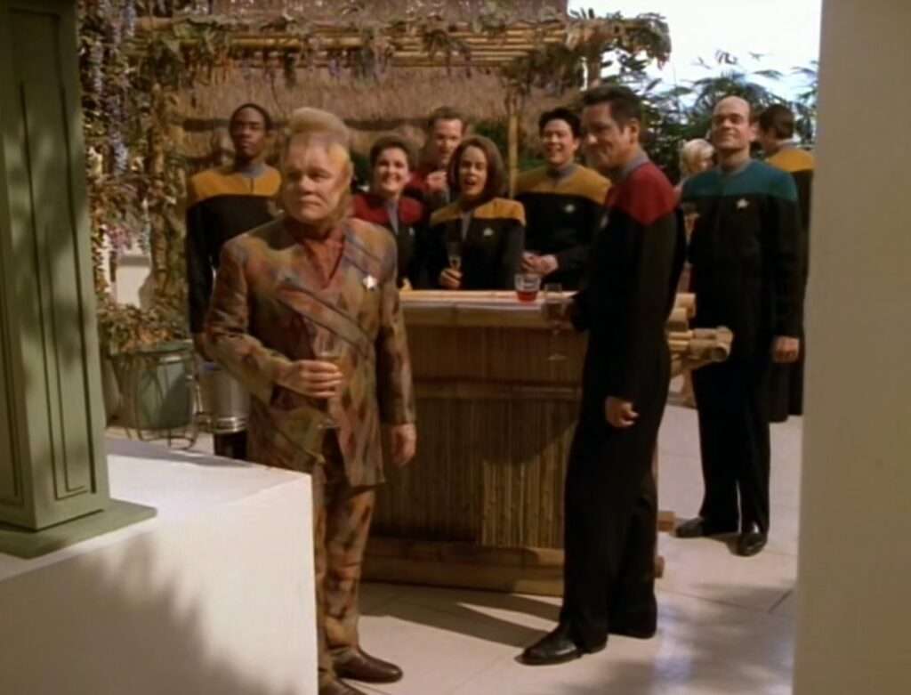 • Harry Kim is promoted to lieutenant in an alternate reality future, which of course doesn’t happen in the primary series timeline.