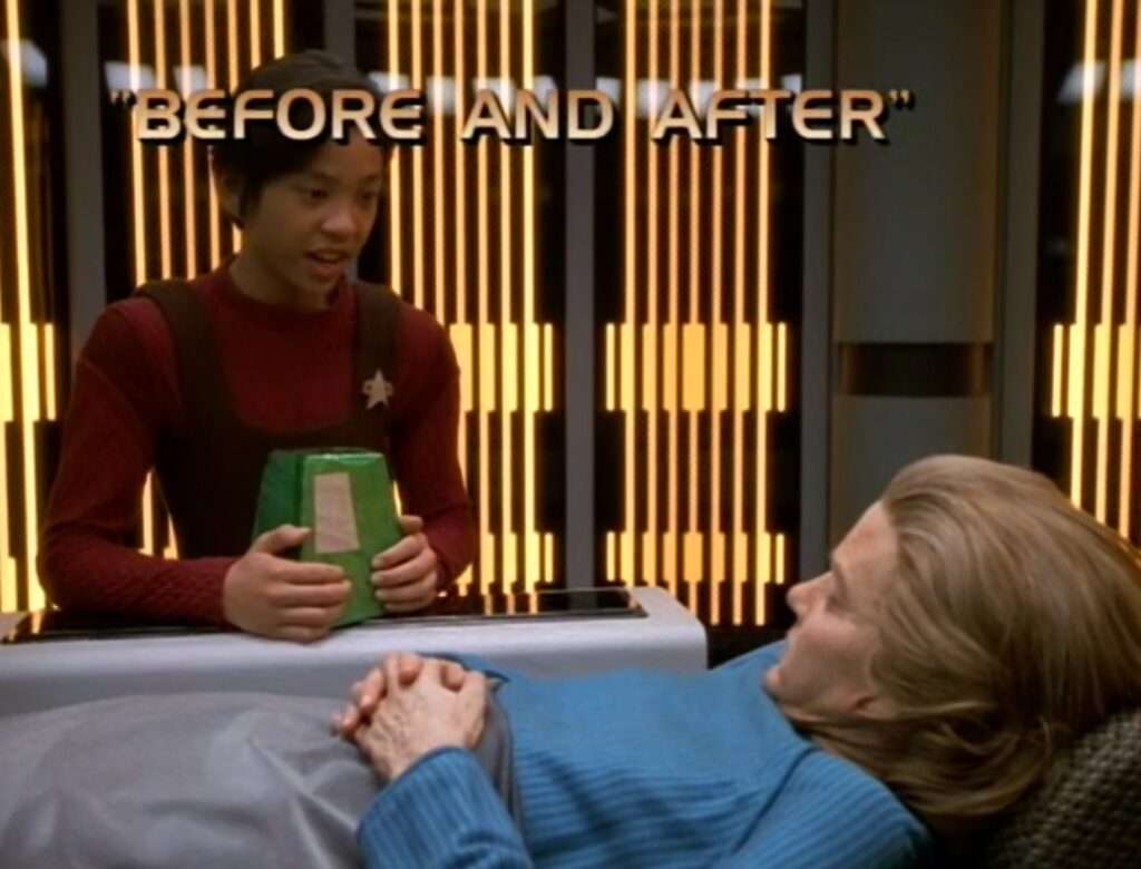 #StarTrekMarathon #StarTrek Voyager Ep 63 - Before and After - 26 Mar 1997 1/2 AN AWESOME TIME TRAVEL STORY - love this! Probably my fav Kes ep. She's stuck time jumping through parts of her life - going backwards in time from a point when she's 9 years old. She has to interact with these points in