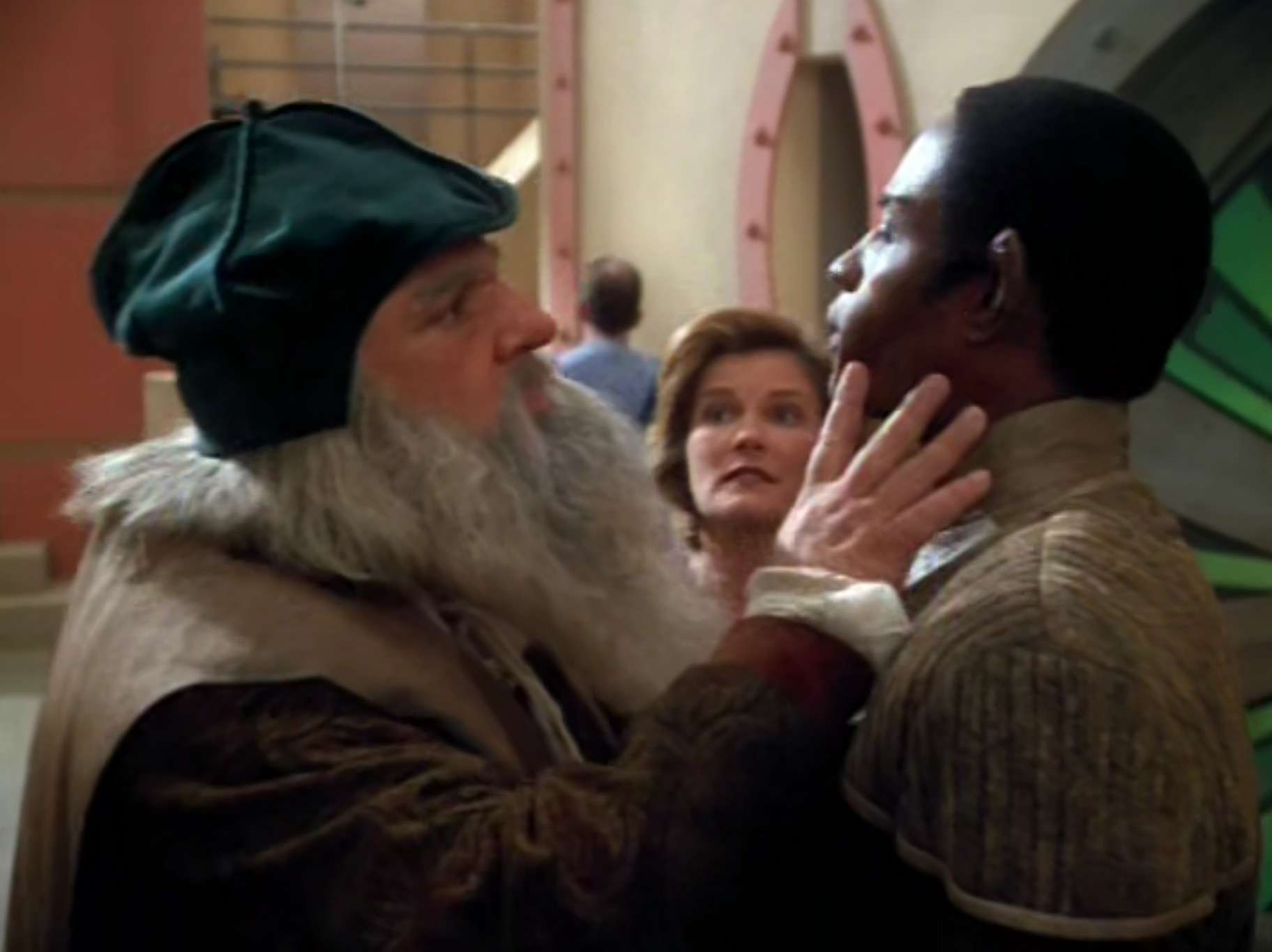 • Side note: A character billed as “Alien Visitor” is played by Don Pugsley.  The actor didn’t appear in any other Trek, but I wanted to point this out as I liked the alien makeup.  I can see several other races’ markings in this, and I quite like the way this one looks.