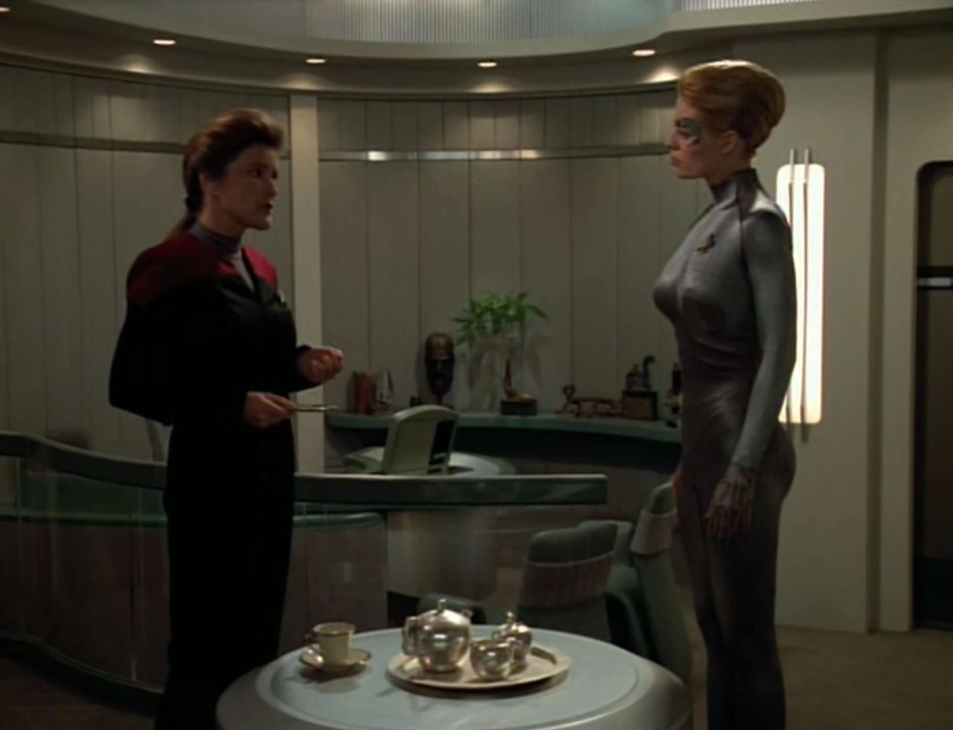 - Two episodes in a row where Voyager loses a shuttlecraft. That makes six total now. Makes you wonder how many they’re supposed to have, as they likely can’t easily build more.