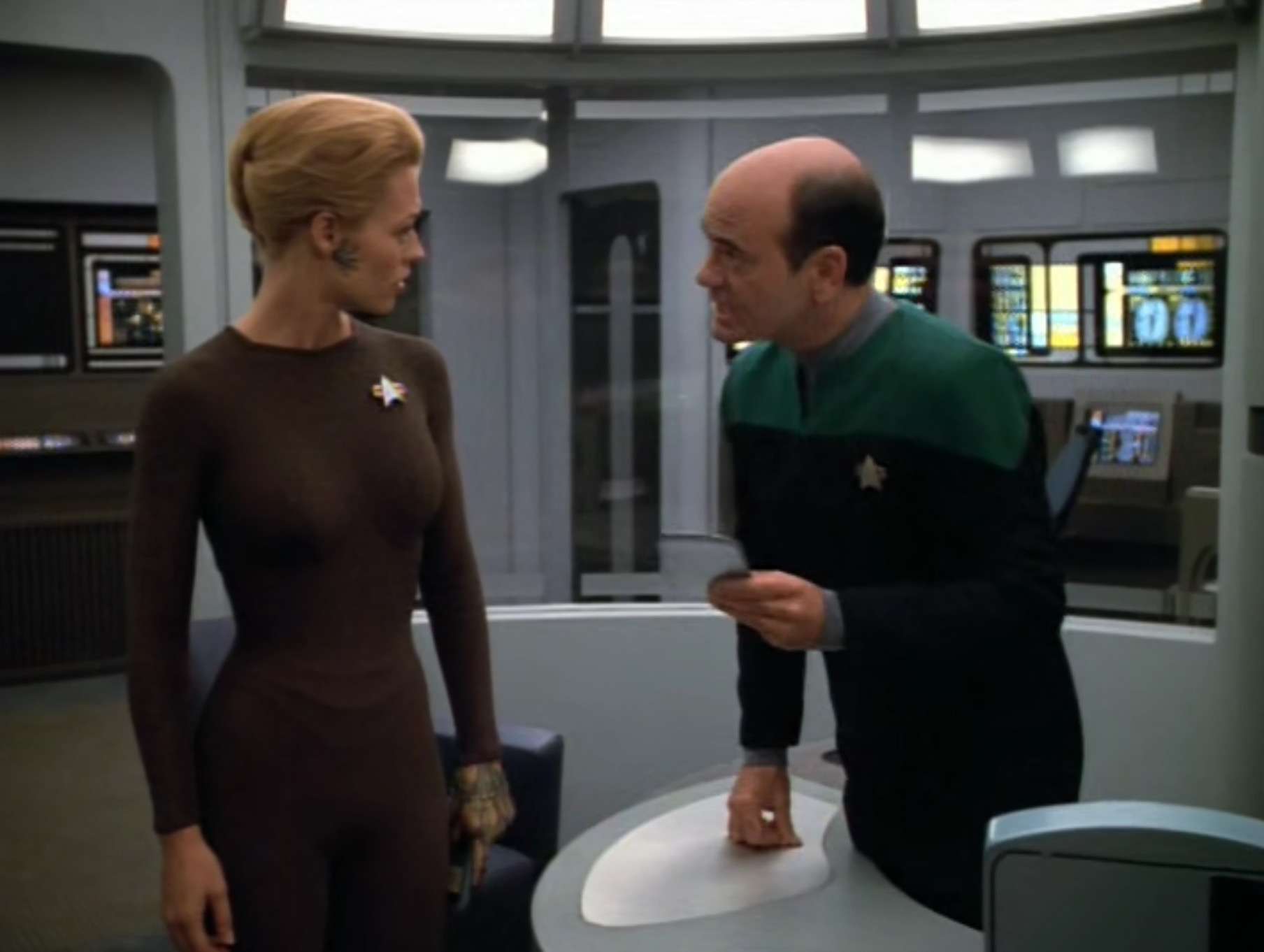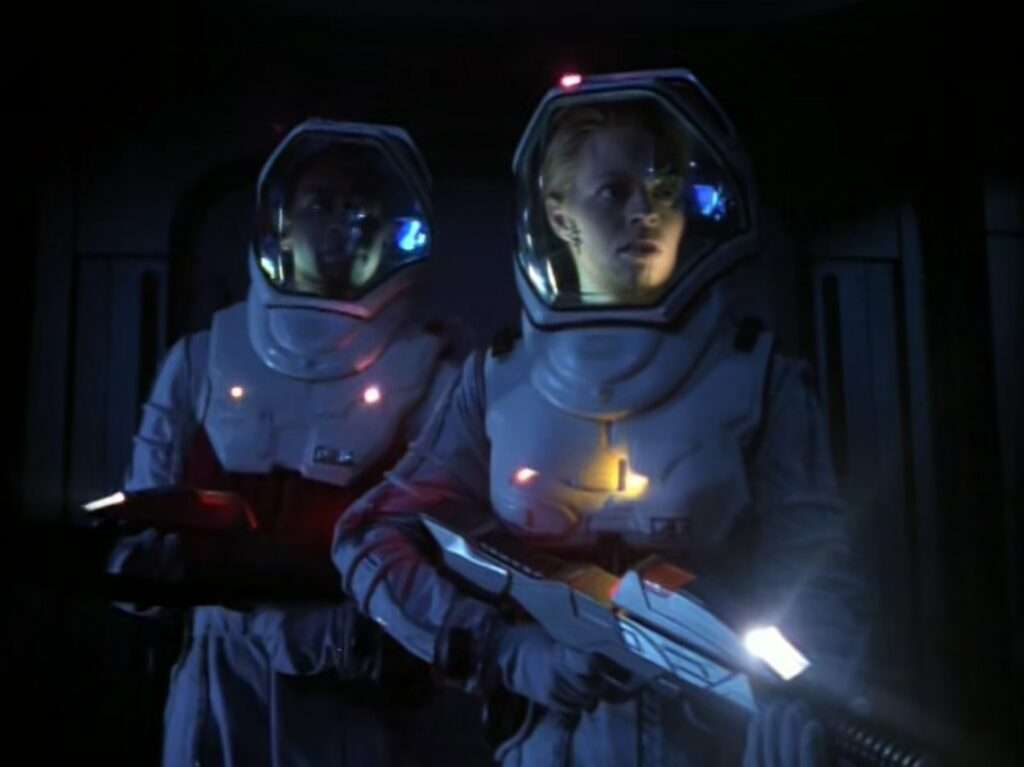 - Janeway says “It is wrong to sacrifice a life to save our own” – something that comes up in spades in the Equinox two parter bridging Seasons 5 & 6.