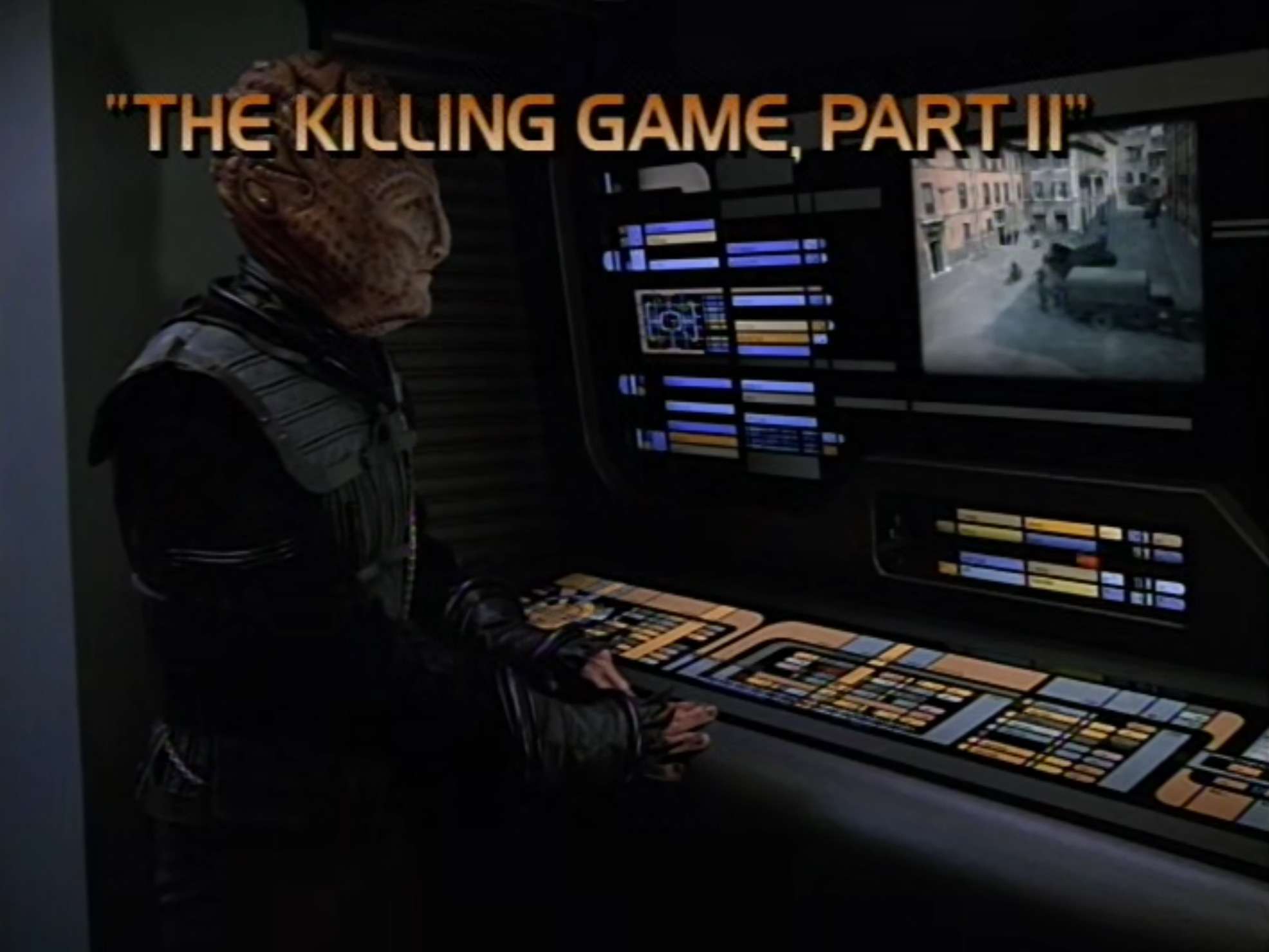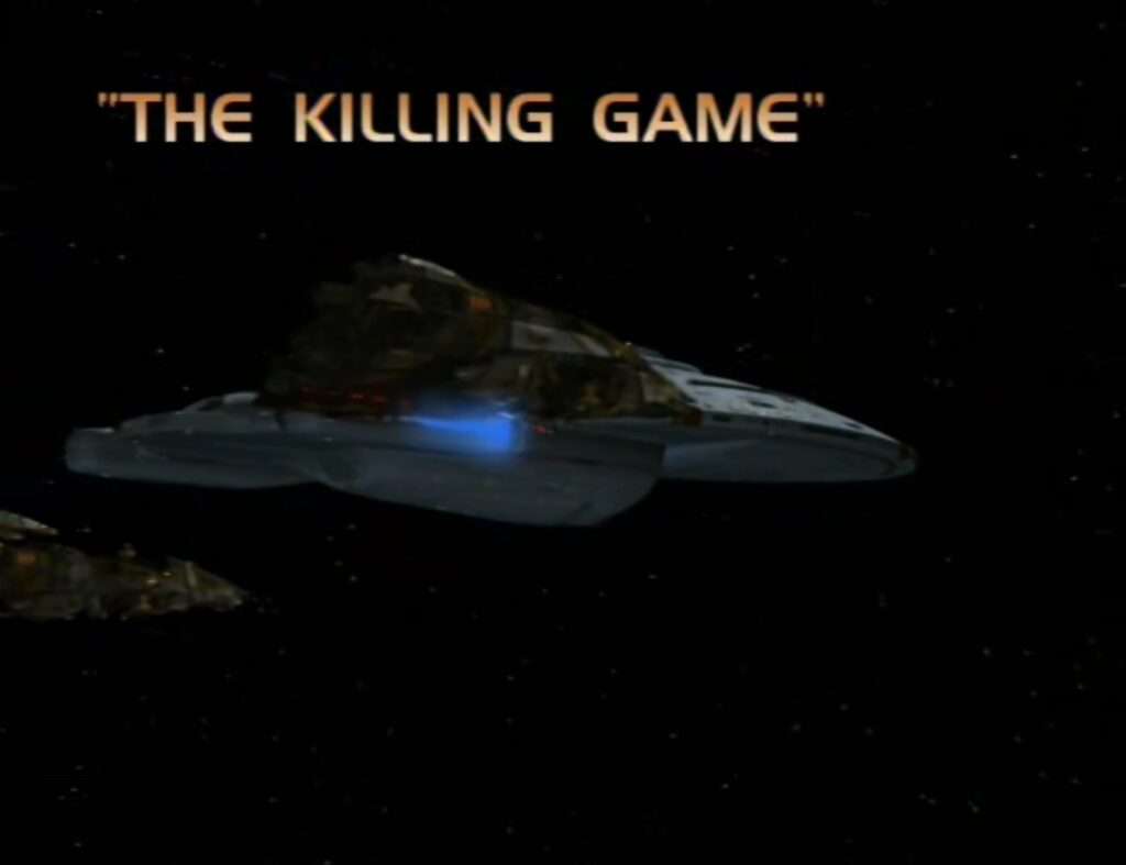 [ Wikipedia | Memory Alpha (Part I | Part II) | IMDB (Part I | Part II) | Amazon US DVD | Delta Flyers Podcast (Part I | Part II) ]#StarTrekMarathon #StarTrek Voyager Ep 86 - The Killing Game - 4 Mar 1998 1/3 First of a 2 parter. The Hirogen return in a big way. They capture the Voyager crew, forcing them to fight in holodeck programs modeled after Nazi Germany in WWII. They worked Roxanne Dawson's real life pregnancy in here,