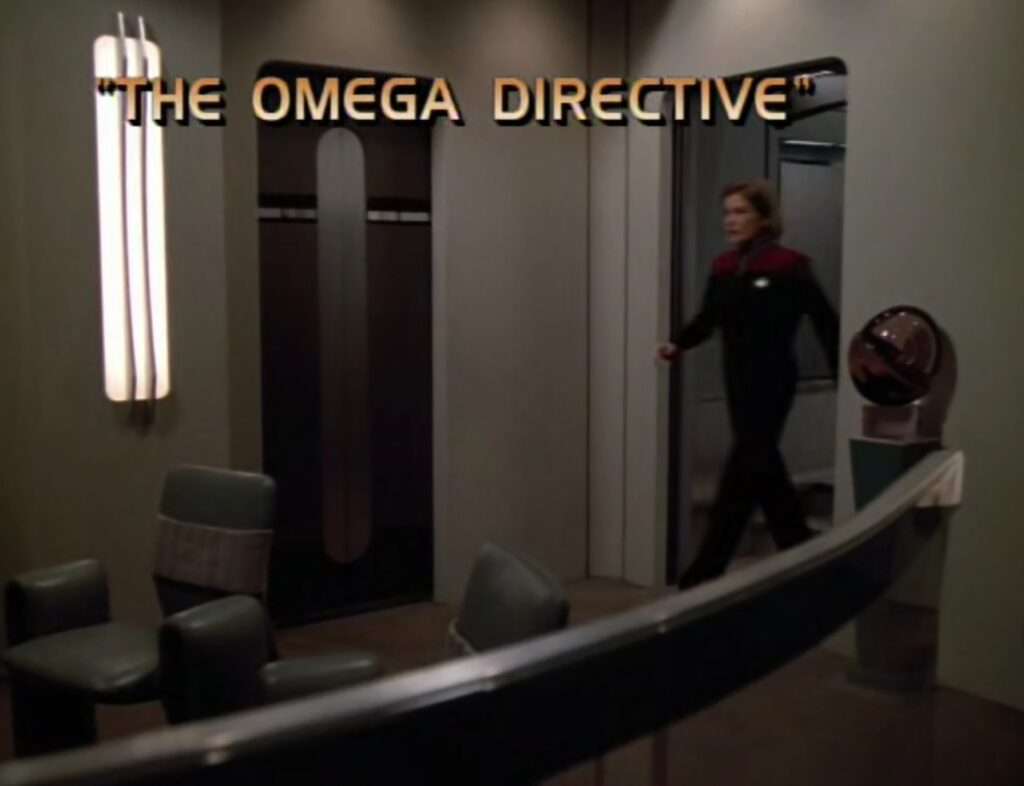 [ Wikipedia | Memory Alpha | IMDB | Amazon US DVD | Delta Flyers Podcast ]#StarTrekMarathon #StarTrek Voyager Ep 89 - The Omega Directive - 15 Apr 1998 1/3 This could thought as a "religious" ep for Seven. Voyager runs into an Omega particle, which requires Janeway to suspend the Prime Directive & destroy it. Seven doesn't want to because it represents perfection to the