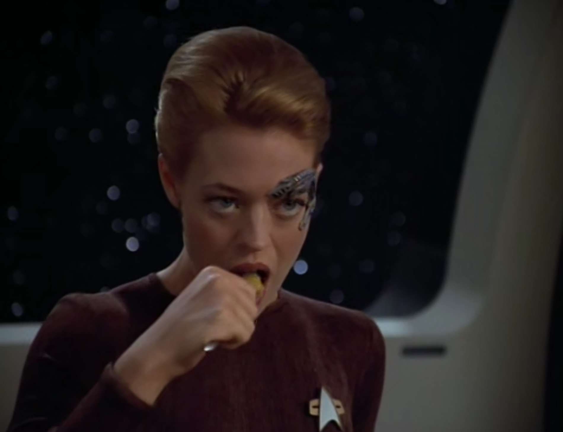 #StarTrekMarathon #StarTrek Voyager Ep 74 - The Raven - 8 Oct 1997 2/2 includes eating food (which is a fun scene with Neelix). She tries to return to the Borg and has flashbacks about her life before being assimilated. The second half of this episode was awesome. Loved seeing Jeri act like a kid.