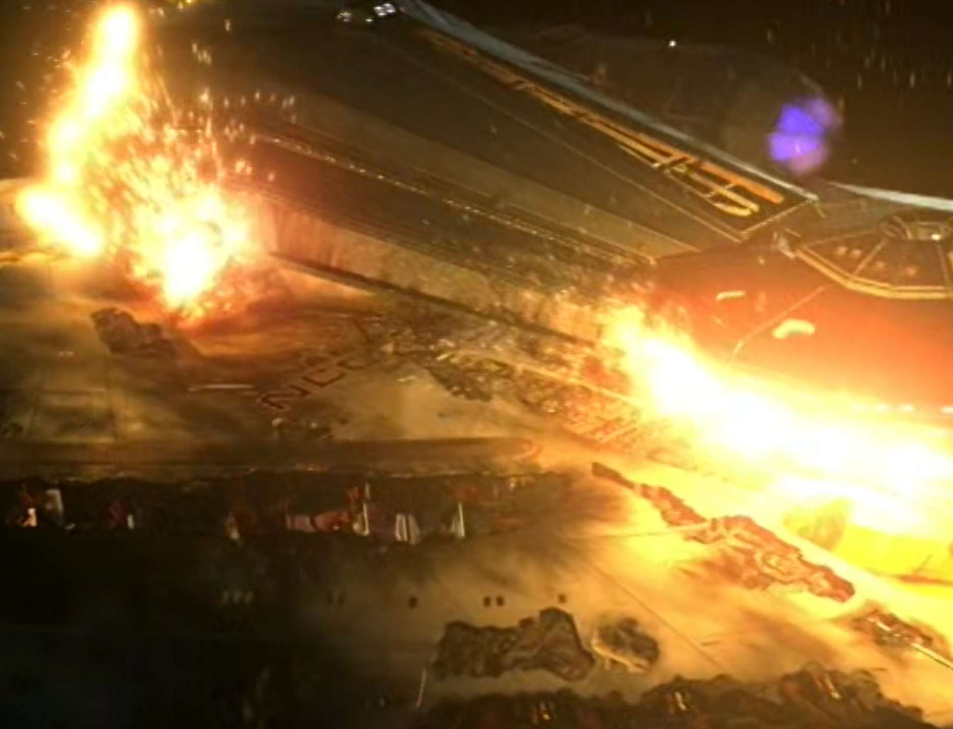 - In the big battle scene at the end, the weapon ship visually reminded me of the station from Babylon 5 – mostly because of a similar blue/purple accent color both ships had.