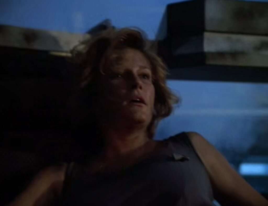 - The stuck turboshaft is a re-use of footage from TNG’s “Disaster“, where the same thing happened.