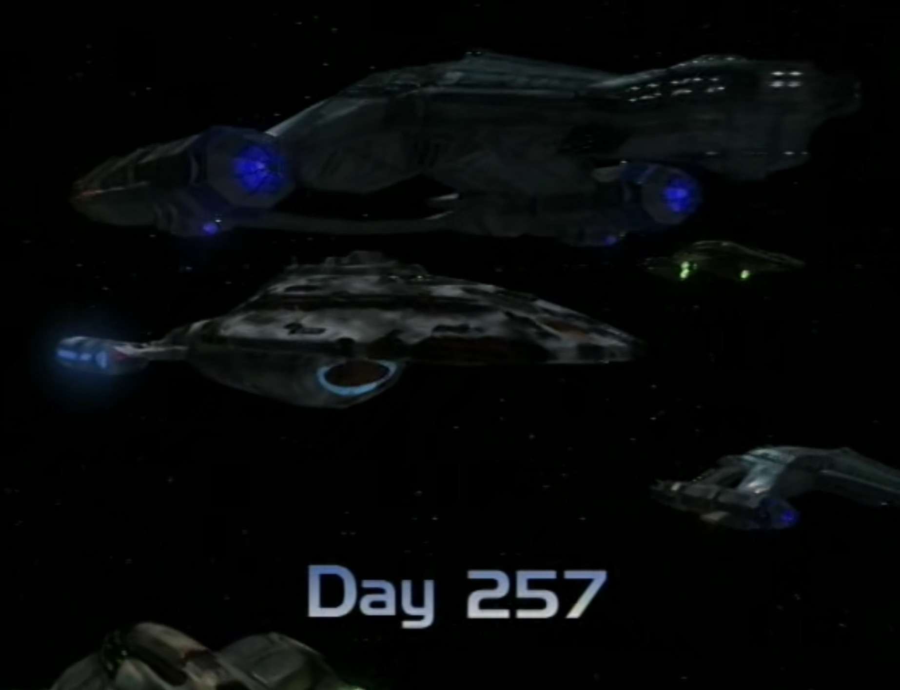 - The second of five times in the series where Voyager is depicted as being destroyed.