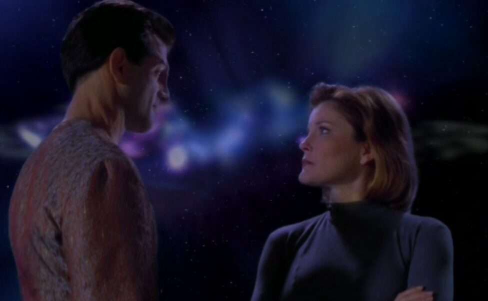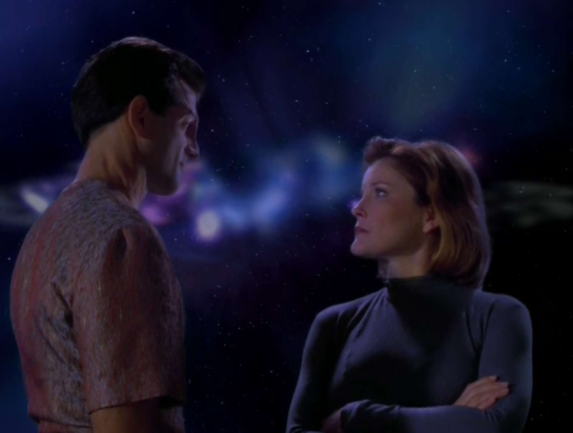 [ Wikipedia | Memory Alpha | IMDB | Amazon US DVD | Delta Flyers Podcast ]#StarTrekMarathon #StarTrek Voyager Ep 104 - Counterpoint - 16 Dec 1998 1/2 Two plots here. Voyager transports telepaths through a region of space that defines that as being illegal. The other is Janeway has a romance with one of the people doing the policing - a man named Kashyk (not a Wookie).