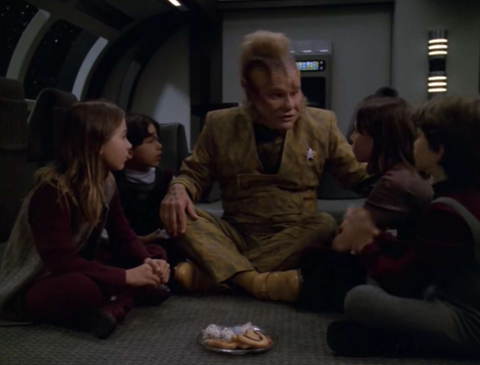 - Patrick Barnitt plays a character called “Brenari” here. In all he plays over 20 different background characters on DS9, VOY, ENT, and a few of the movies produced around this time. I’m not going to list them all here, but there’s a list with pictures on the Memory Alpha blog entry for Barnitt here.