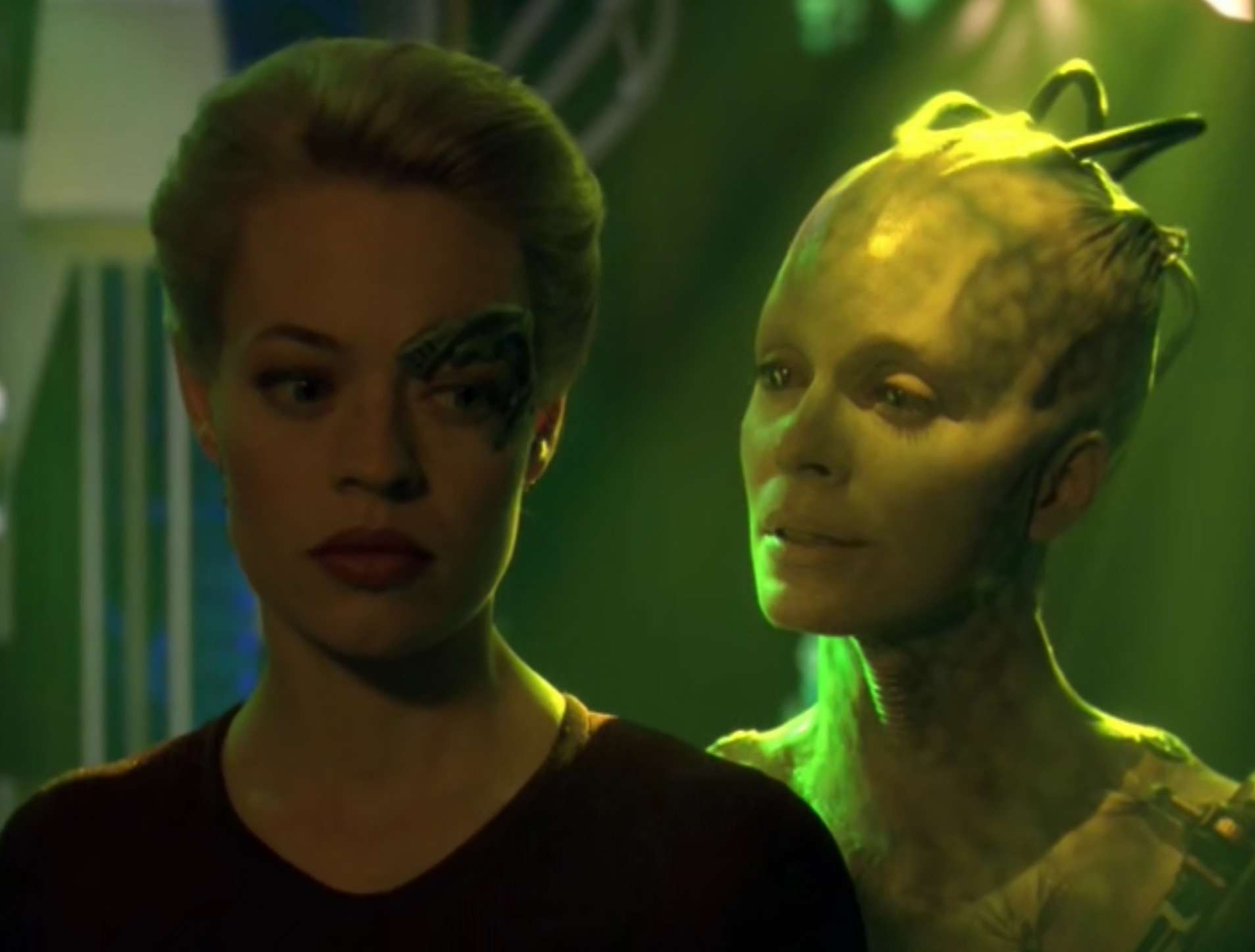 • A review I read of this episode said that after this episode had Janeway & Seven be more like Picard & Data in their relationship together.  I can see that.