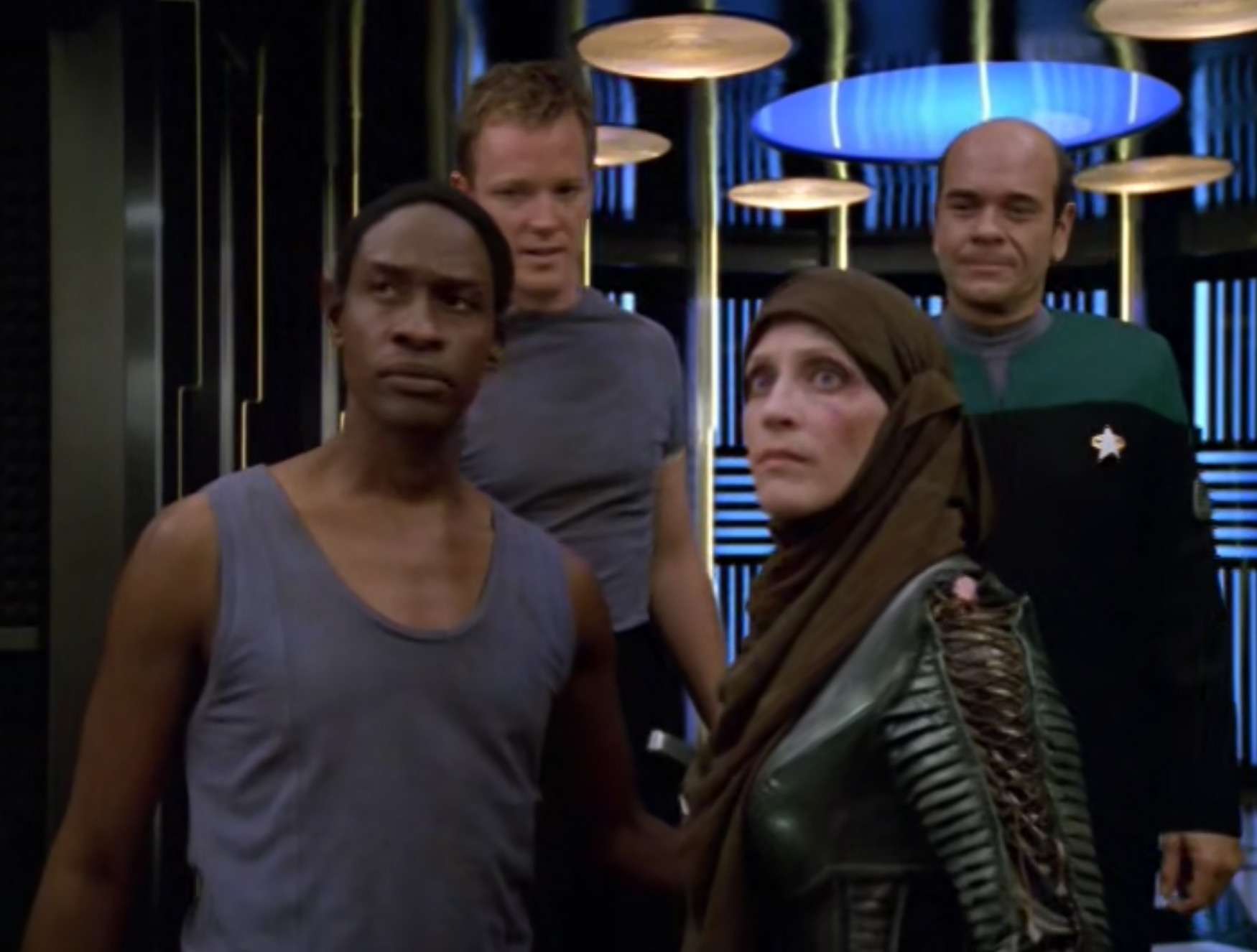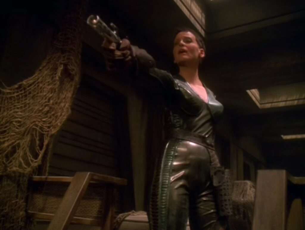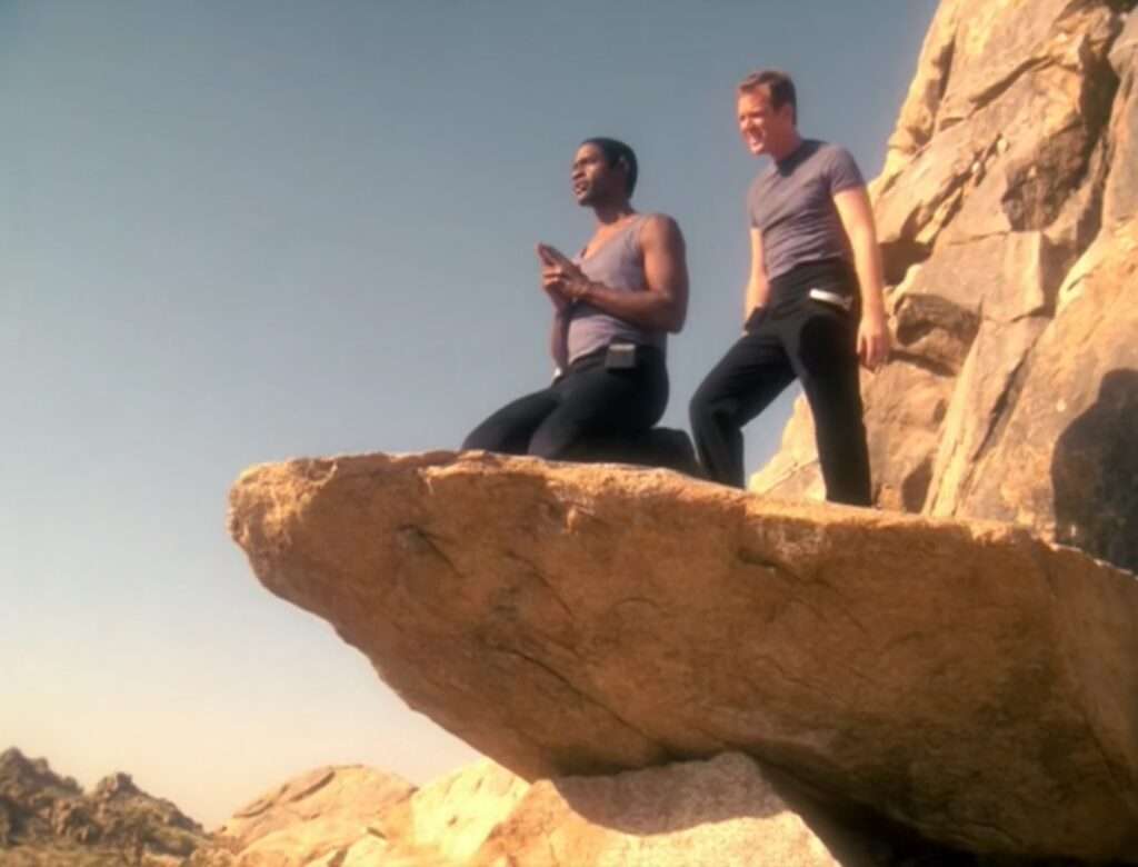 - The desert areas of this episode were previously appeared in DS9’s “Shadows and Symbols“. The two episodes aired just four months apart.