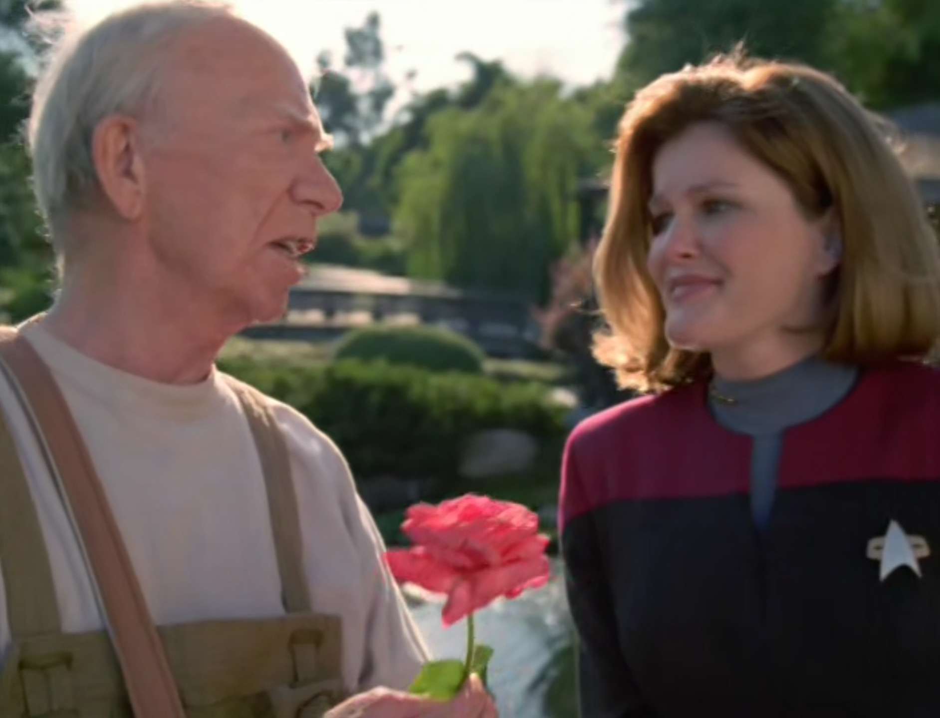 - Ray Walston reprises his character of Boothby he originated in TNG’s “The First Duty“. However here it is a species 8472 impersonation. Walston would reprise the role once more in “The Fight“.