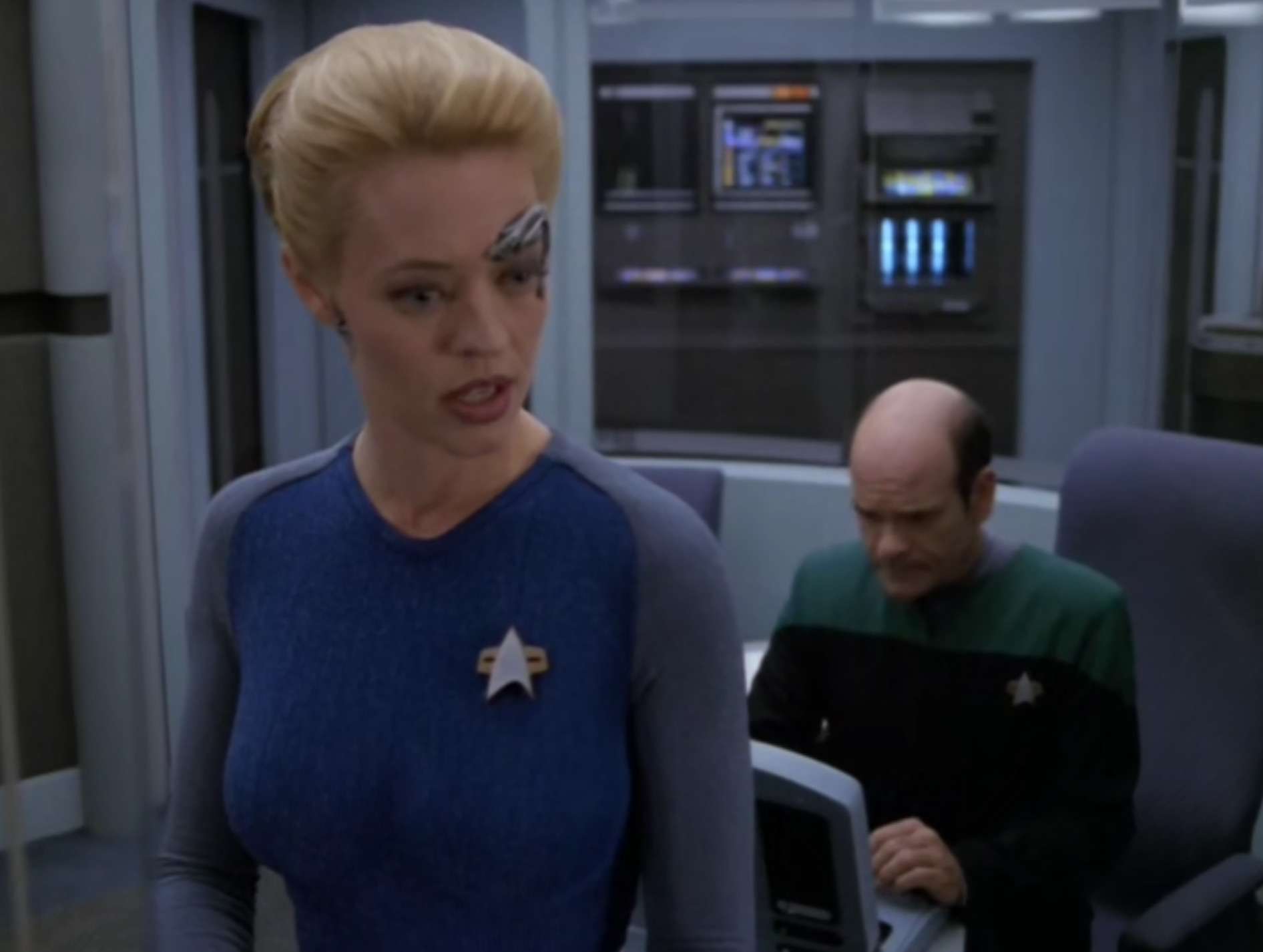 - The first episode with Seven’s blue bodysuit.