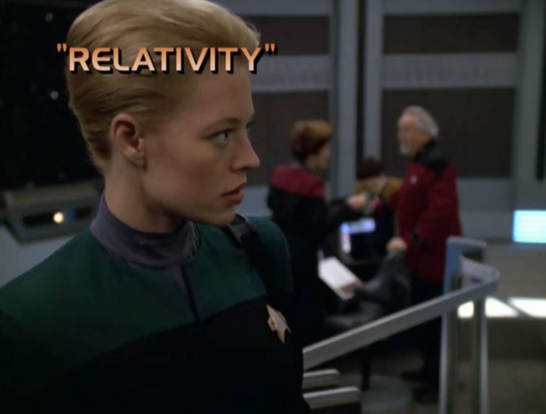 [ Wikipedia | Memory Alpha | IMDB | Amazon US DVD | Delta Flyers Podcast ]#StarTrekMarathon #StarTrek Voyager Ep 118 - Relativity - 12 May 1999 1/3 One of my favs. A good time travel romp. Reminds me in part of Back to the Future II with multiple copies of people floating around. Seven is recruited by a 29th century Federation timeship (hello Bruce McGill), and sent thru