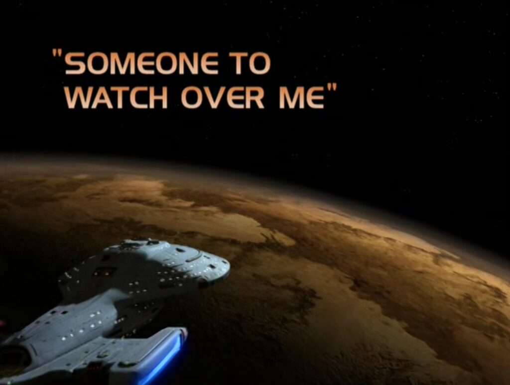 #StarTrekMarathon #StarTrek Voyager Ep 116 - Someone to Watch Over Me - 26 Apr 1999 3/3 Unrelated, but as a Red Dwarf fan, I can't hear this phrase without thinking of a funny Rimmer bit. It's from "Thanks for the Memory" where we see Rimmer dreaming that he's singing "Someone to Watch Over Me". :)