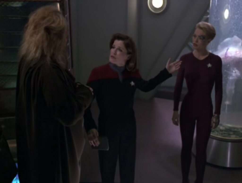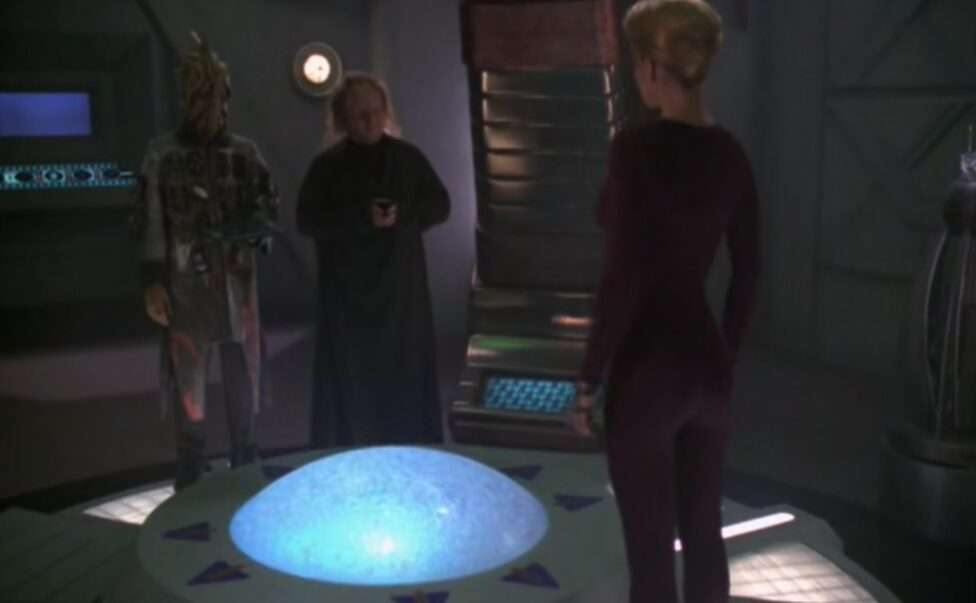 • The Vidiians get a shout out here – apparently this group solved their Phage for them.  I kind of wish we could have seen them again after that.